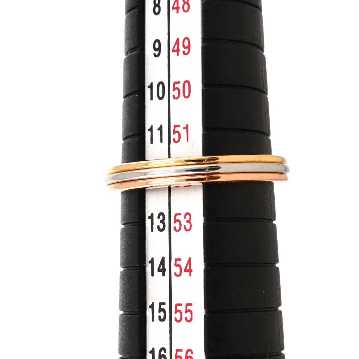 イエロー、ホワイト、ピンクゴールドの輝きが高級感漂うカルティエのヴァンドーム リングです。細身の3ゴールドが重なったエレガントなデザインで指元を華やかに演出してくれます。
