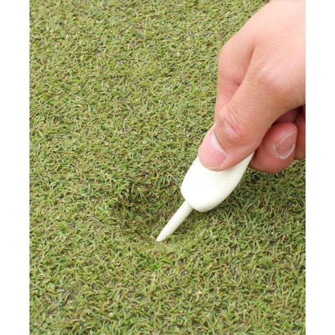 1.ディボット・スティックを取り出す 2.ボールマークの内側を斜めから差す 3.ボールマークの周りを何度も抜き差し 4.ボールマークが浮き上がるまで繰り返す 5.パターのソールで平らに固める 6.すっかり元通りになります!
