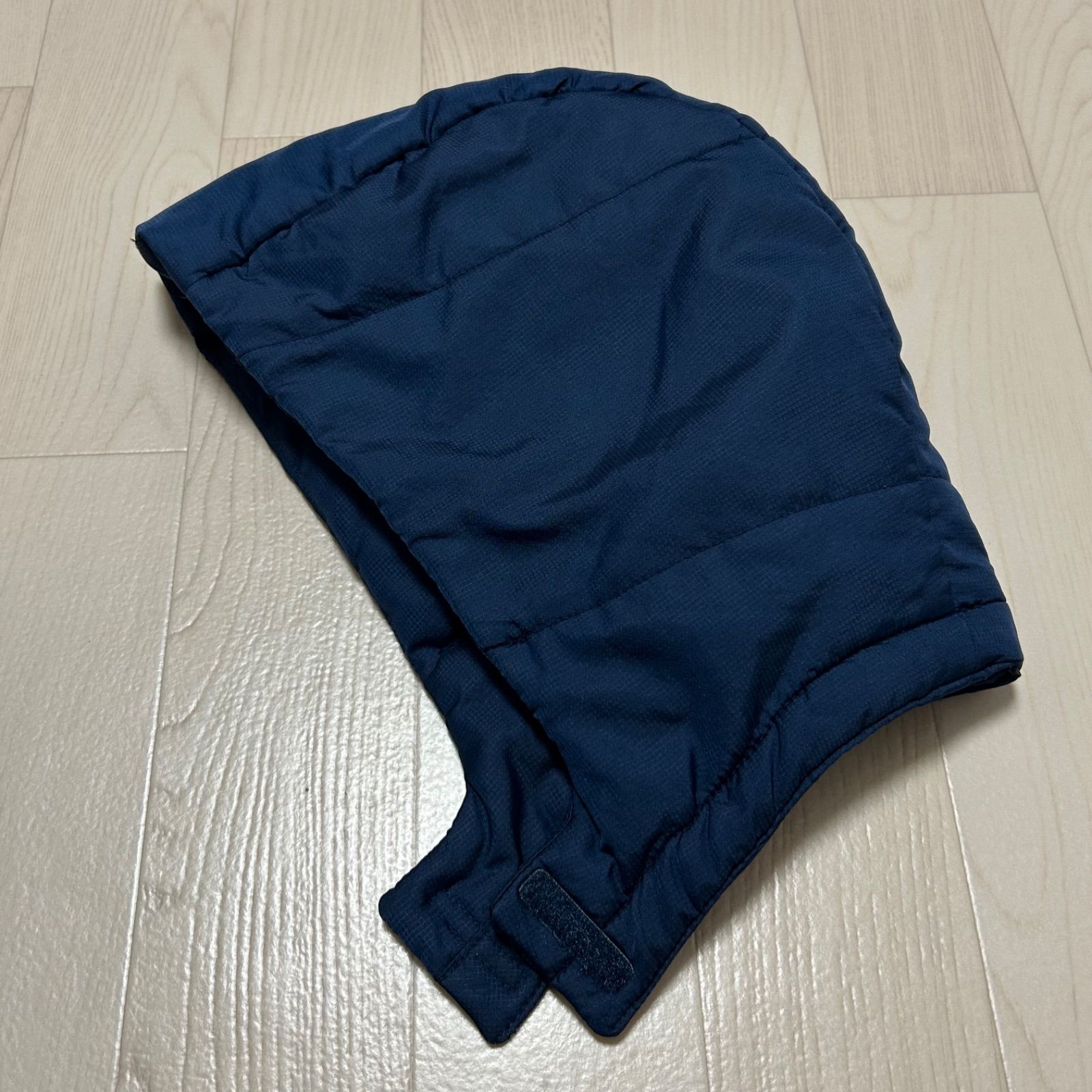 中綿素材を使用しており、軽量でありながら暖かさを保ちます。フード付きのデザインは、風や寒さからしっかりと守ります。