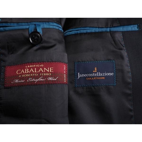 AMFステッチ、ラペル毛芯など、百貨店向けならではの上級仕立てで仕上げられております。ファブリックは1988年創業のイタリア随一の伝統を誇るカバラーネ社のウール100%生地を使用。イタリアならではの深み、光沢のある染色技術で仕上げています。非常に柔らかく色合いが豊かで、繊細かつ、なめらかな着心地です。畝のくっきりしたガルゼ生地です。