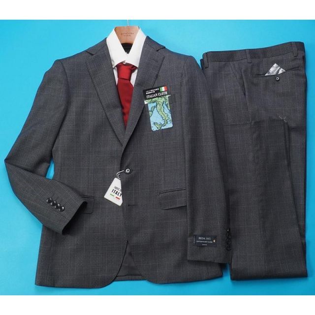 商品名:新品8.6万円 大手百貨店扱い 日本製 秋冬『REDA レダ 伊製生地』Super110S ウール100% グレンチェック柄 スーツA7灰(H) 1128601