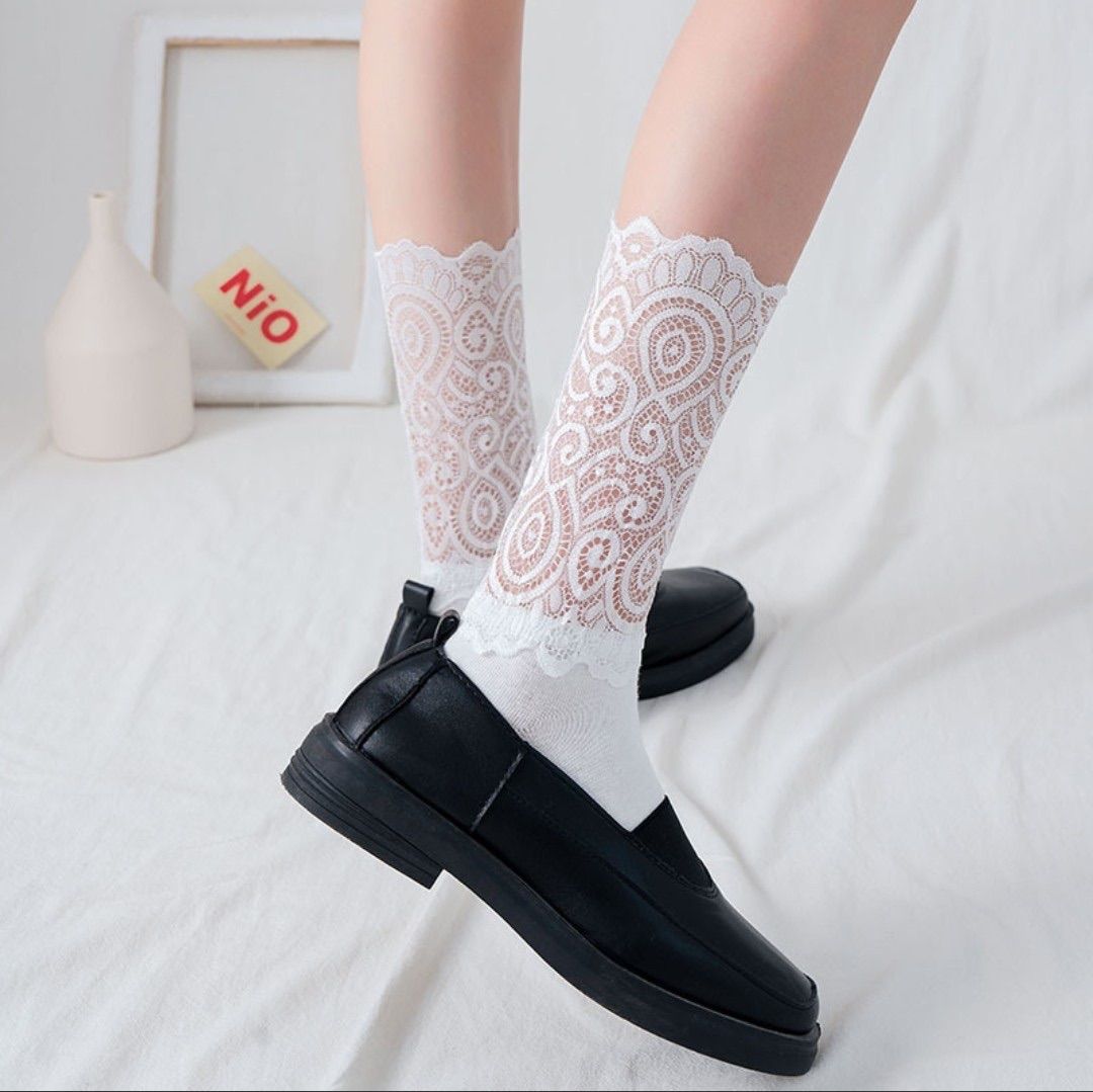 ホワイト レース 靴下 上品 可愛い レディース ロリータ