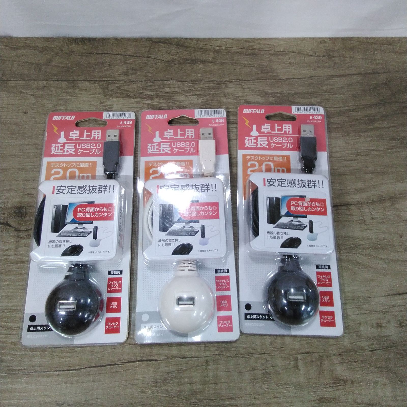 BUFFALO、USB2.0延長ケーブル3点のまとめ売りです。