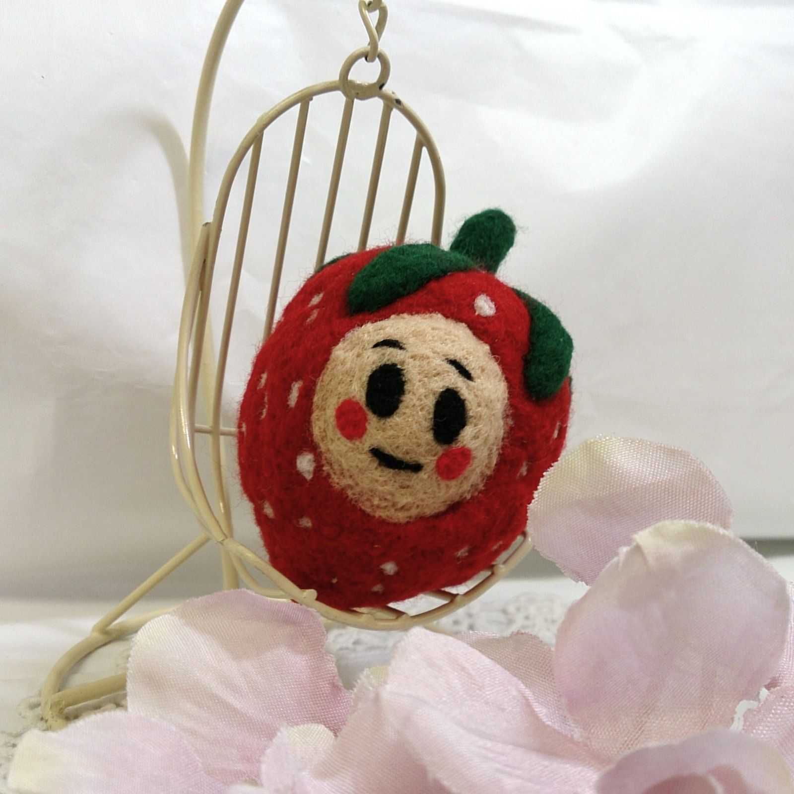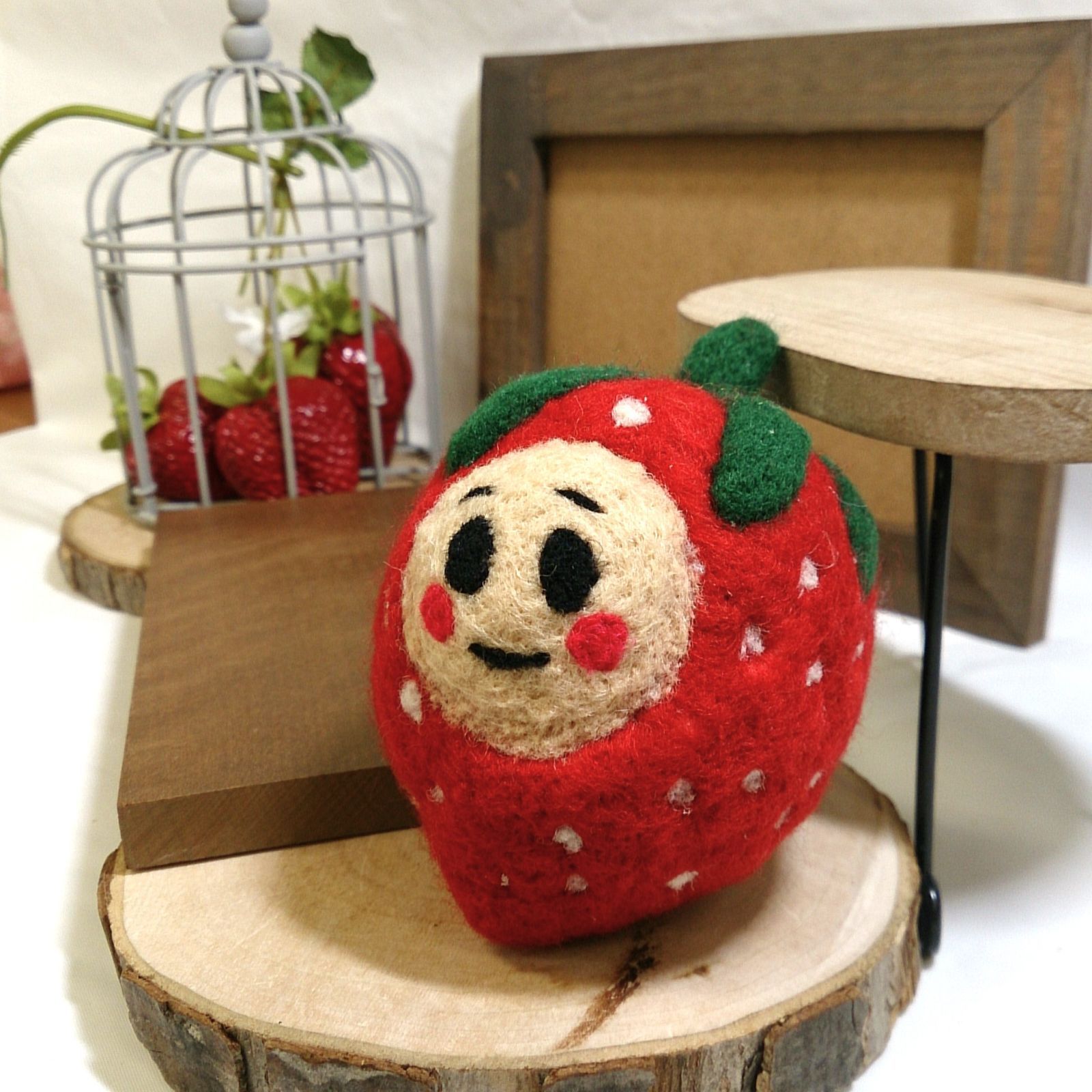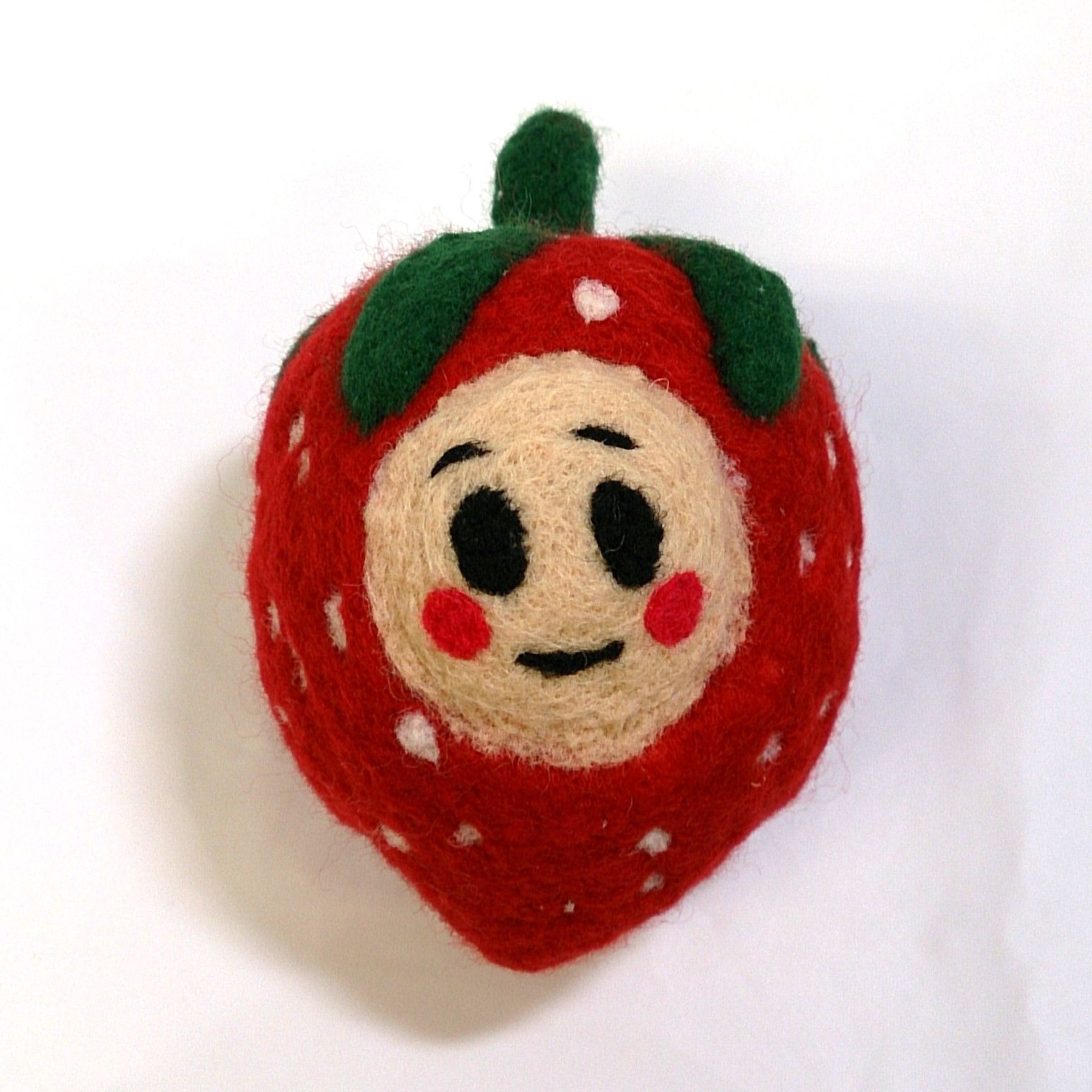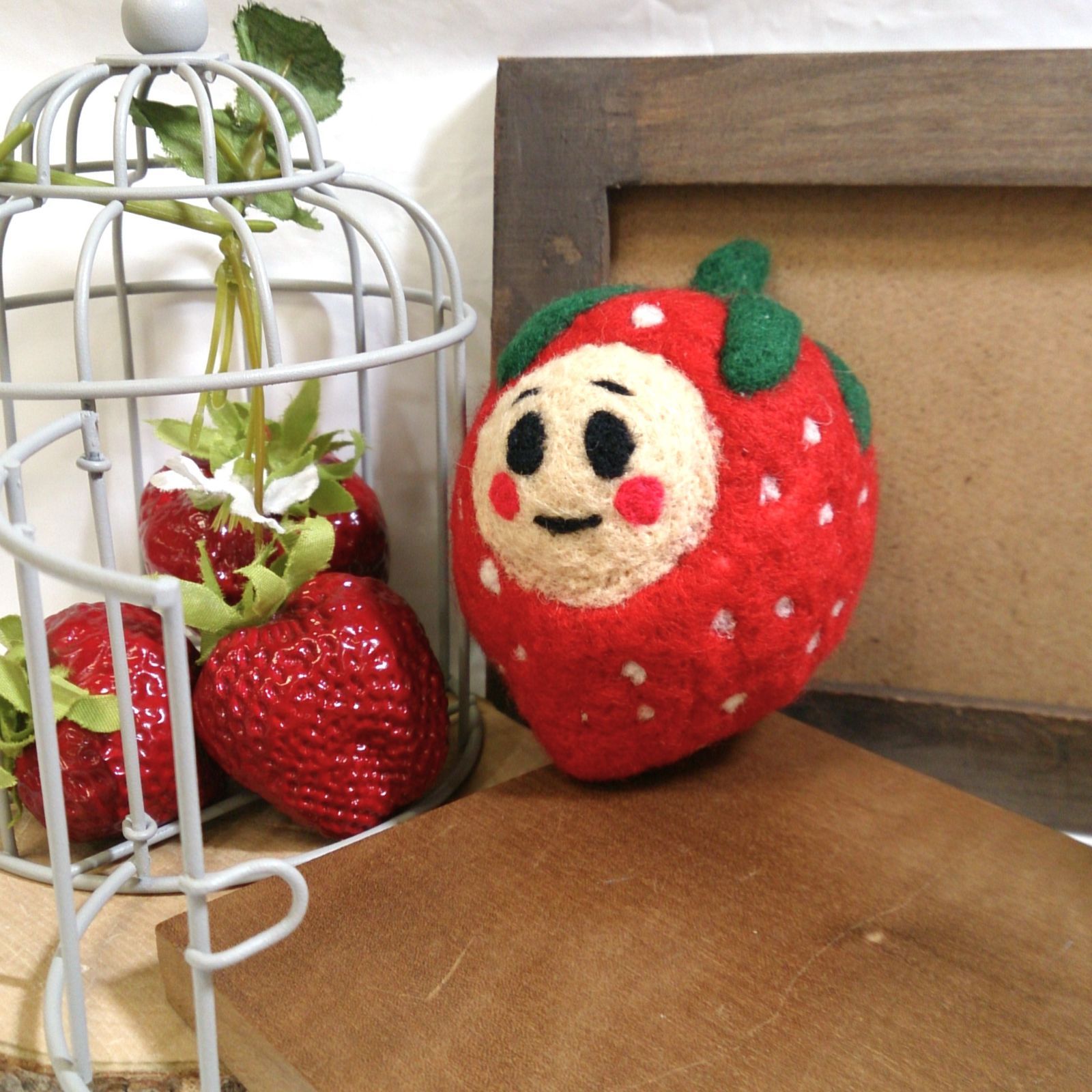 羊毛フェルトで丁寧に作った作品「いちご太郎」です。