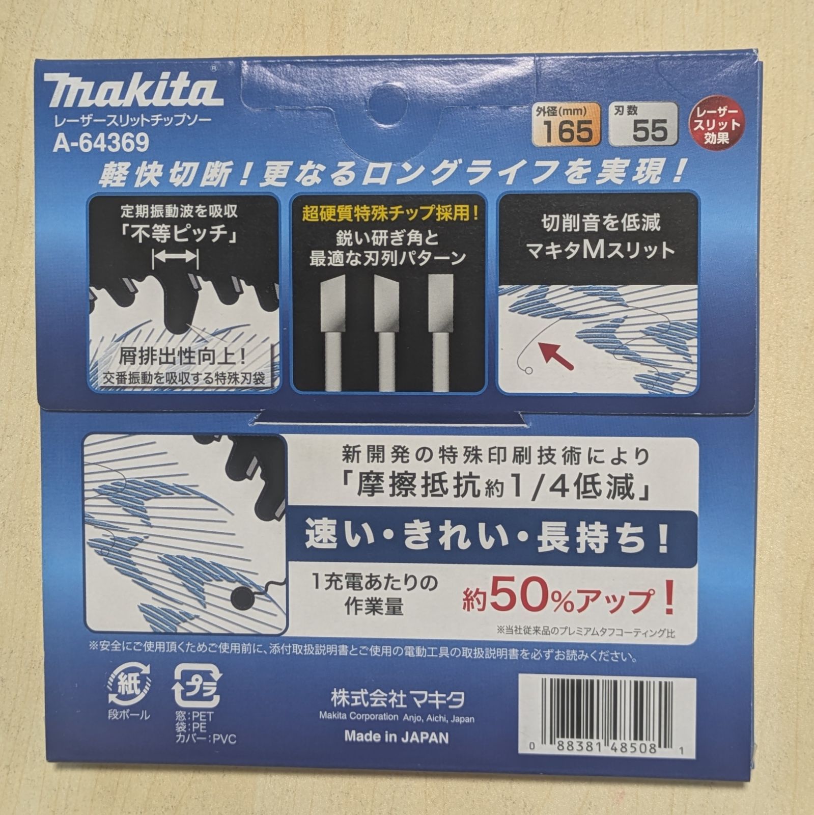 マキタの鮫肌プレミアムホワイトチップソー165㎜です。