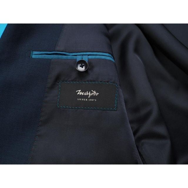 AMFステッチ、ラペル毛芯など、百貨店向けならではの上級仕立てで仕上げられております。 ファブリックは南イタリア随一の伝統と最大級の規模を誇るマルゾット社の生地を使用。精細なヘリンボーンシャドー柄です。イタリアならではの深み、光沢のある染色技術で仕上げています。非常に柔らかく色合いが豊かで、繊細かつ、なめらかな着心地です。