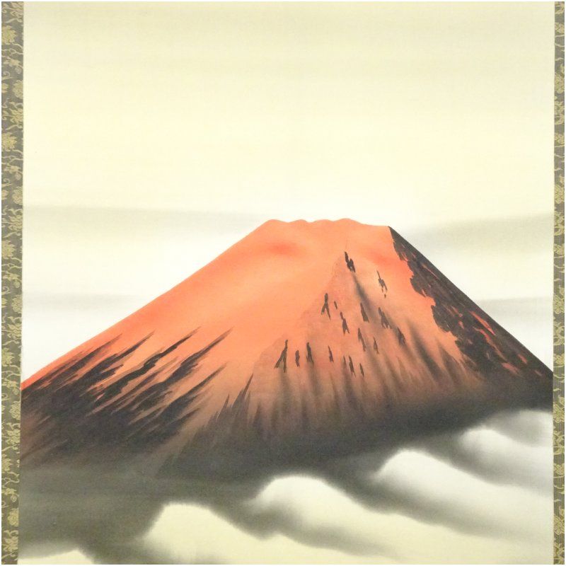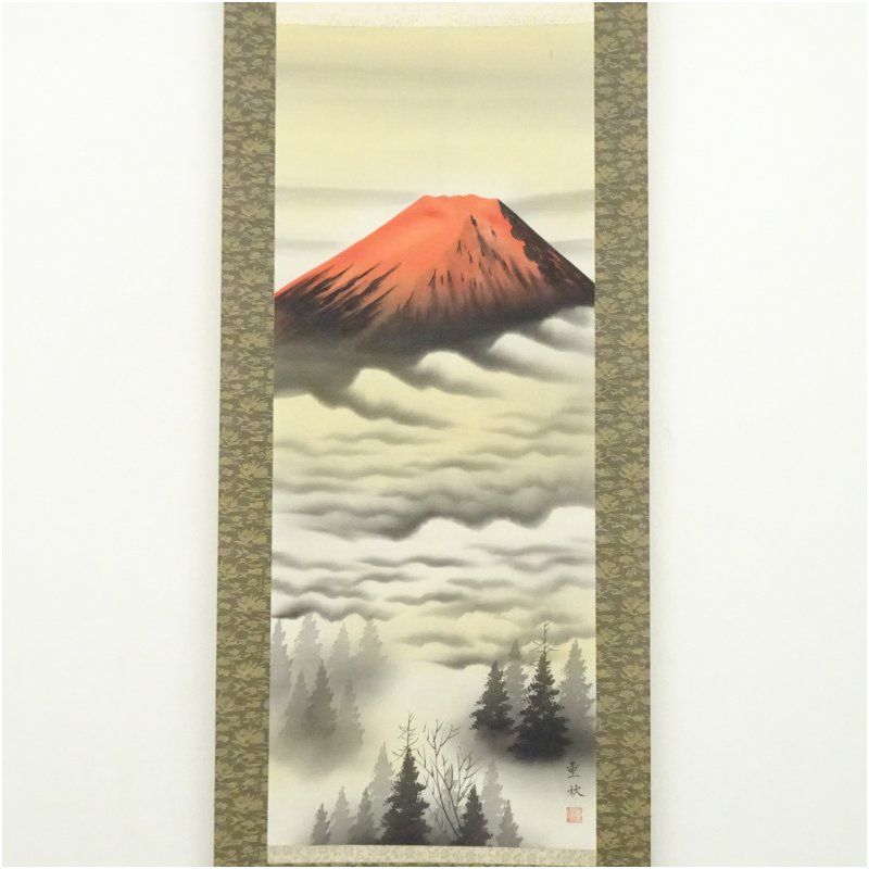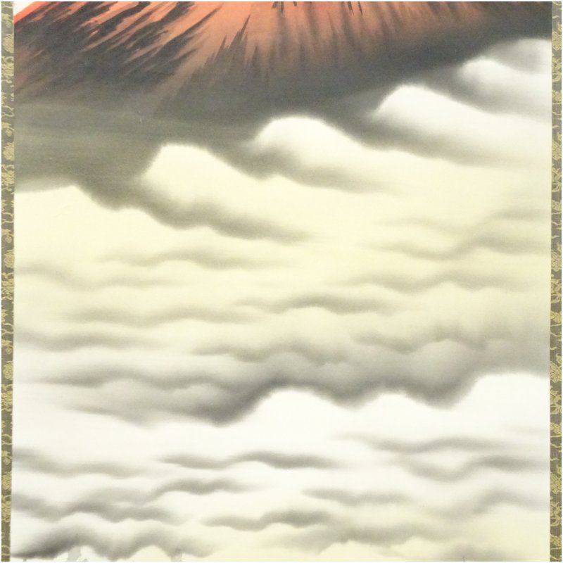 本紙と表具表面に全体的に薄いシミがあり、数点の汚れがあります。