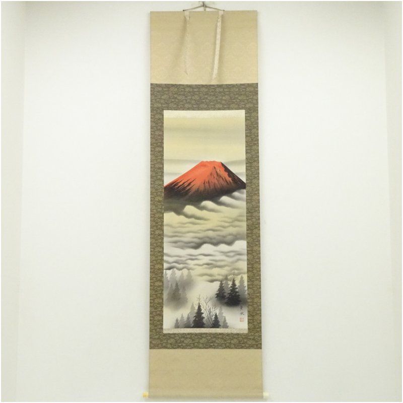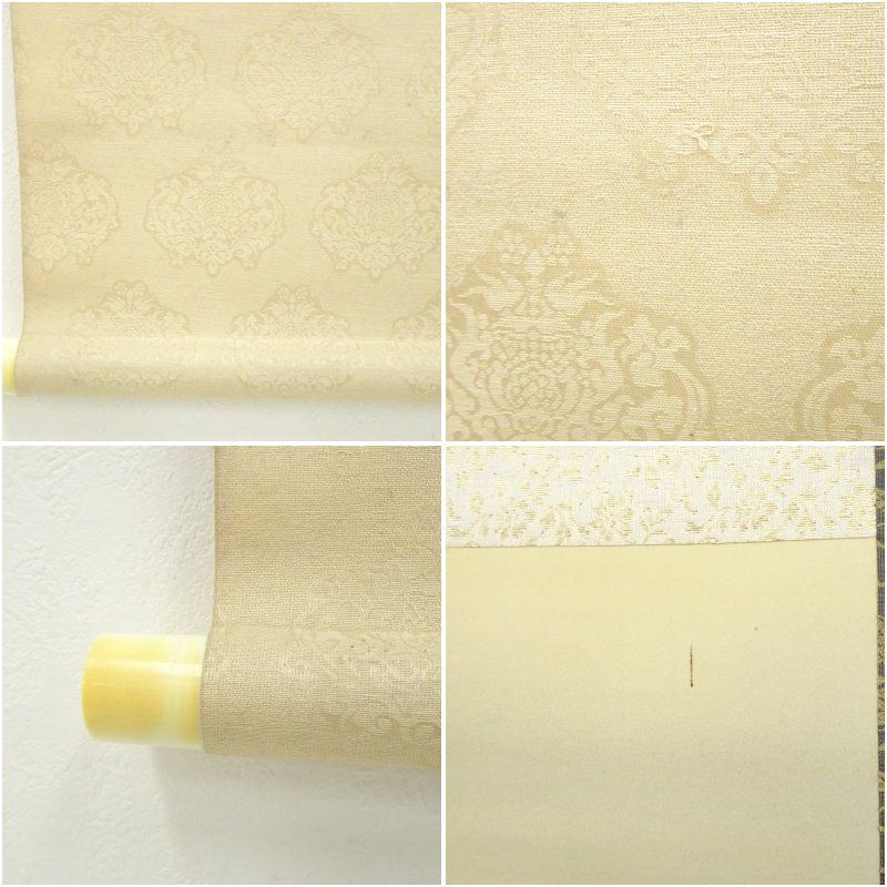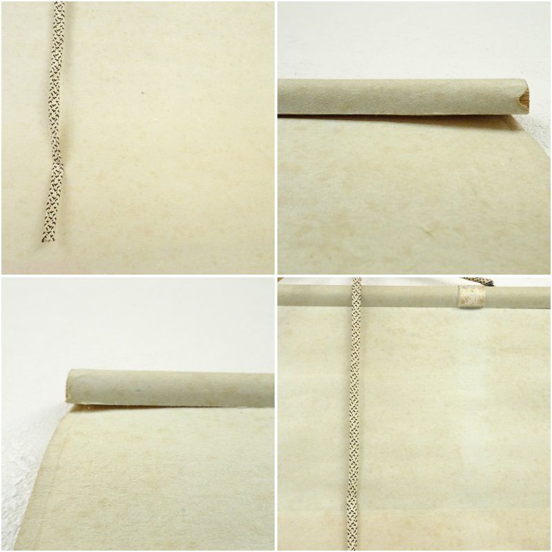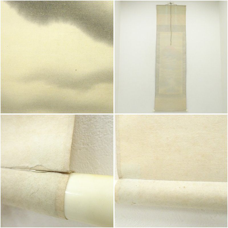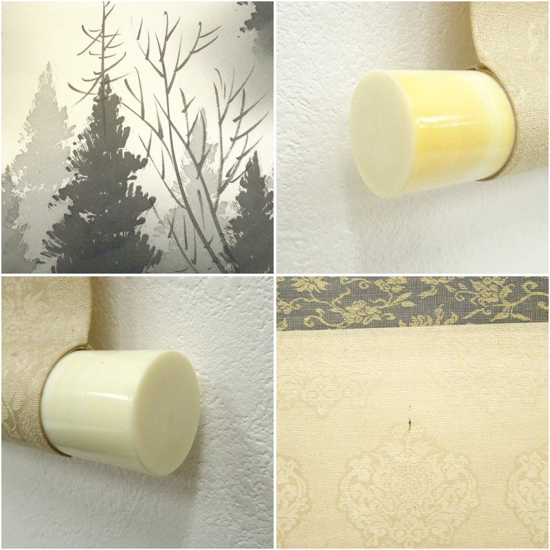 表具下部の軸先付近に破れがあります。軸先片方にヤケがあります。