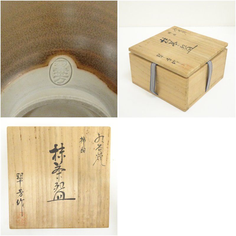 九谷焼 村中翠芳造 柿釉茶碗(共箱) 茶道 抹茶 おしゃれ 抹茶茶碗 抹茶碗 和食器 レトロ 茶器 骨董 茶わん 茶会 茶の湯