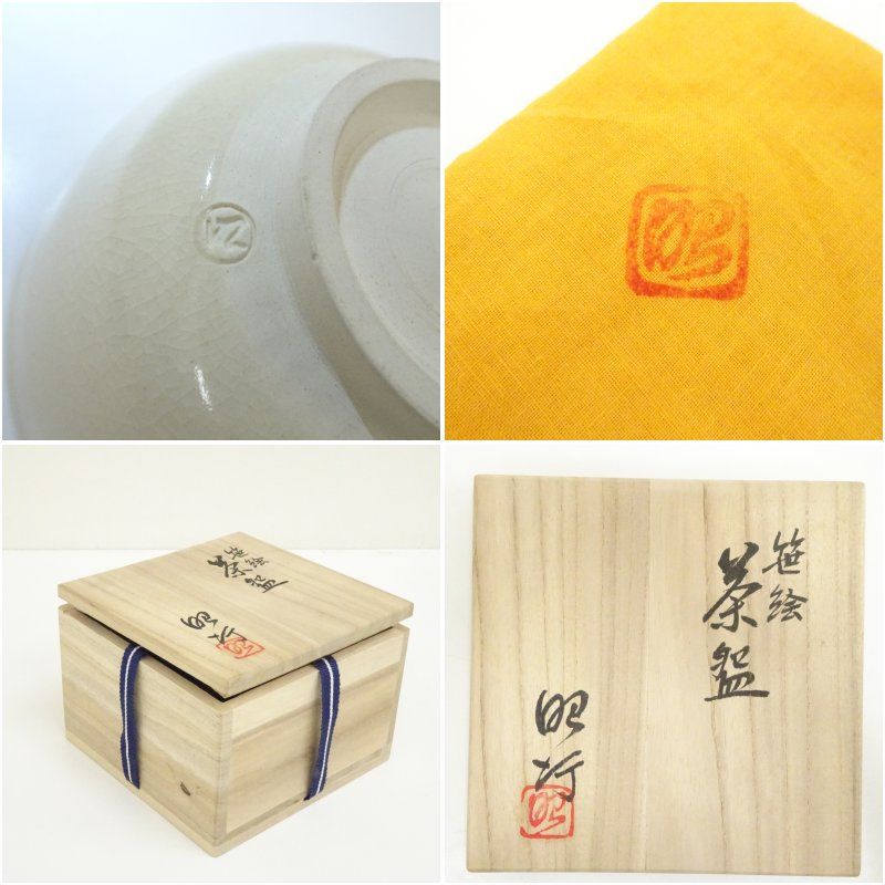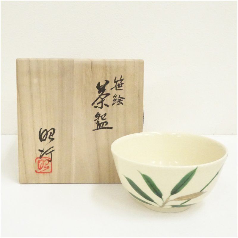 昭行造 笹絵茶碗(共箱) 茶道 抹茶 おしゃれ 抹茶茶碗 抹茶碗 和食器 レトロ 茶器 骨董 茶わん 茶会 茶の湯