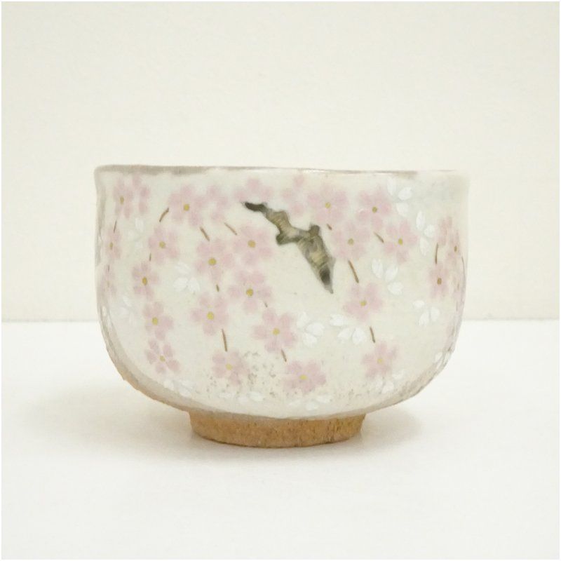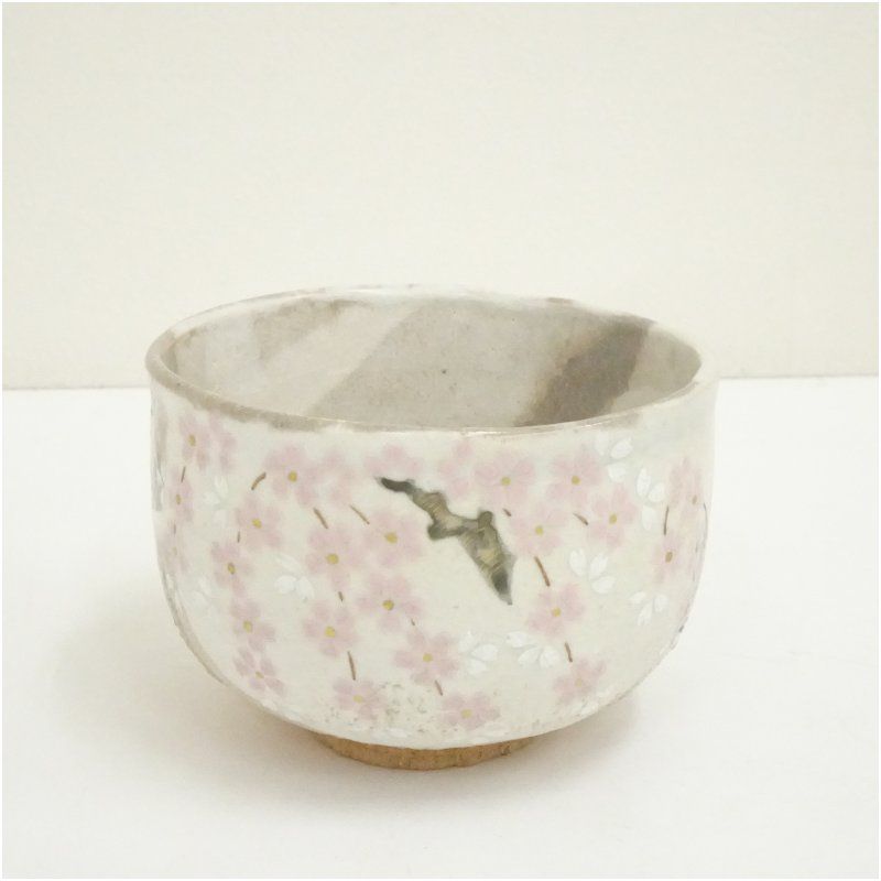竹桂庵 西山象楽造 裂白釉枝垂桜図茶碗(共箱) 茶道 抹茶 おしゃれ 抹茶茶碗 抹茶碗 和食器 レトロ 茶器 骨董 茶わん 茶会 茶の湯