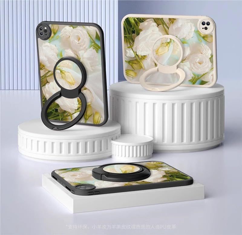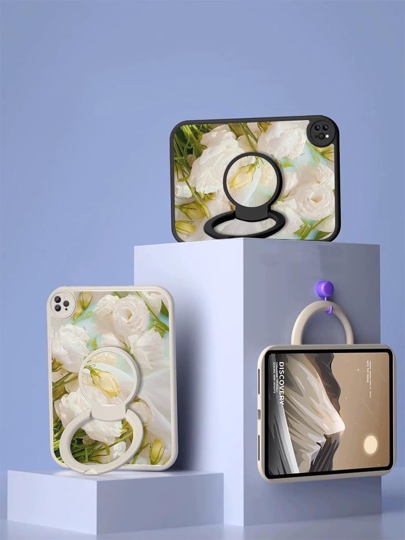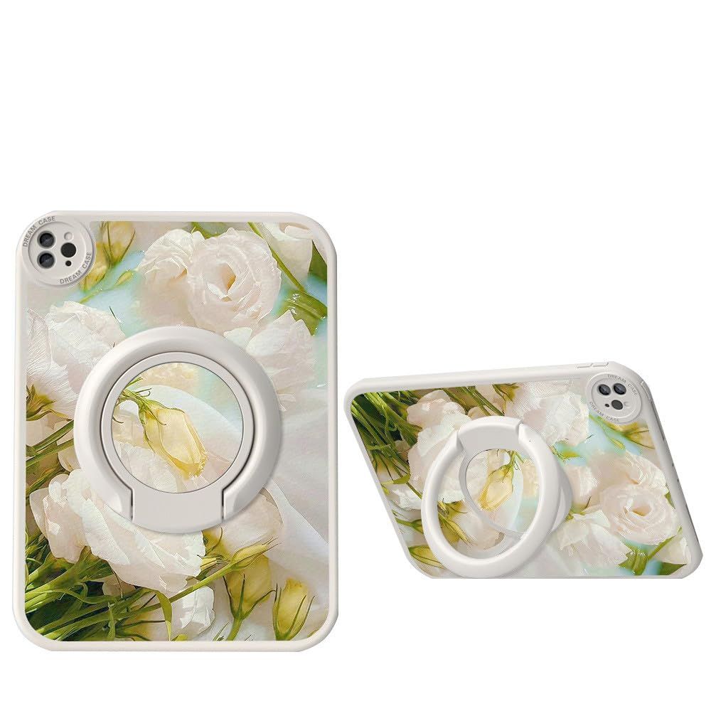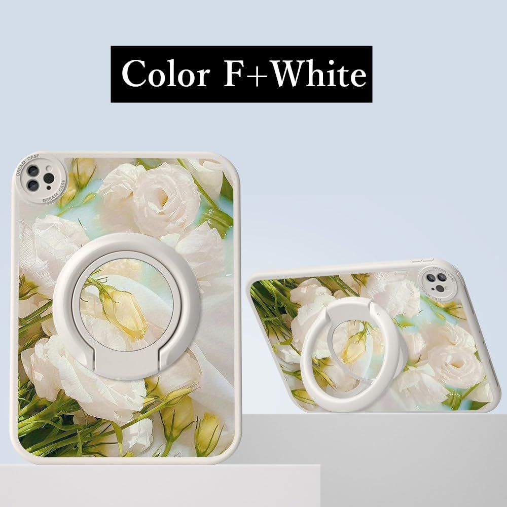 kaidisen 360度回転 対応 iPad Air 11インチ M3 M2 ケース 花柄 縦置き スタンド iPad Air 第 5 4 世代用 10.9インチ カバー PU TPU ソフトケース イラスト オリジナル 柄付き フラワー 女性 ,Color F+White