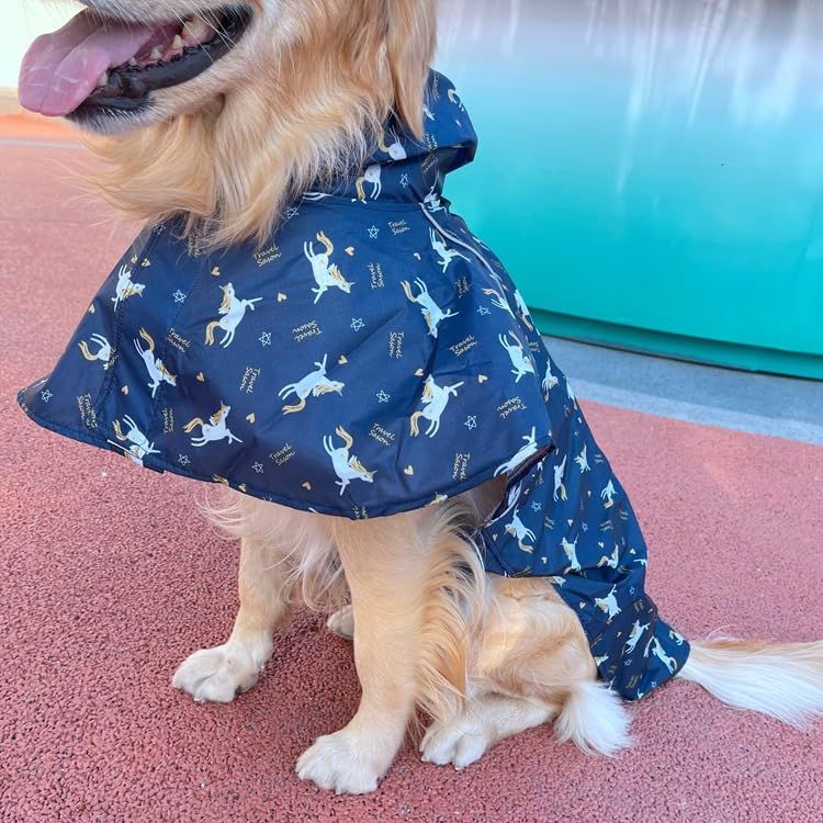 犬用レインコート 犬カッパ 雨具 通気 帽子付き 反射条付き 散歩用犬服 着脱簡単 ド 犬ジャケット ペット雨具 中型犬 大型犬 着脱簡単 ド 犬ジャケット ペット雨具 ホワイト ,ブルー (ブルー【四足用タイプ】, S)