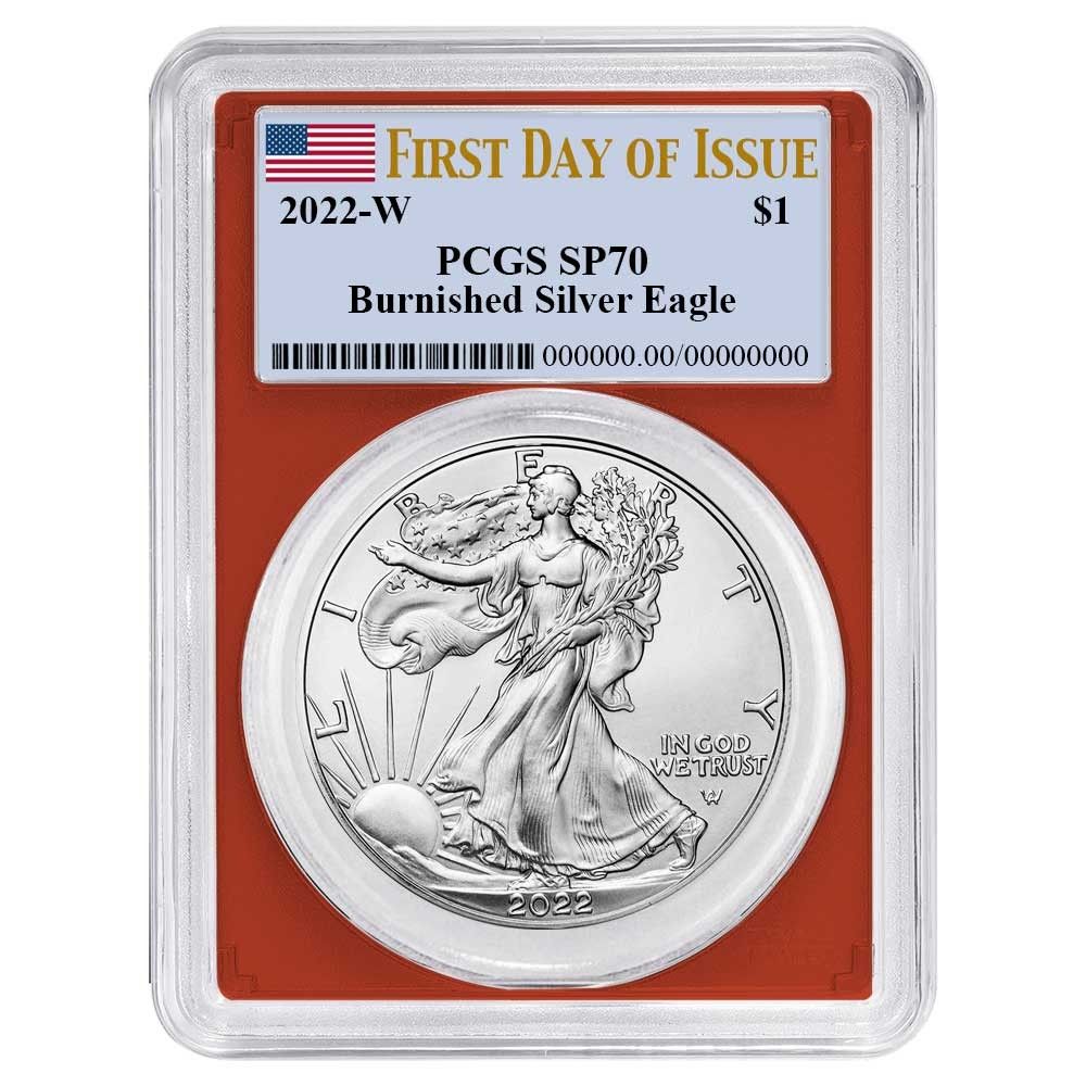 2022W バーニッシュ仕上げ 1ドル アメリカン シルバー イーグル PCGS SP70 FDOI 旗ラベル レッドフレーム2022W Burnished $1 American Silver Eagle PCGS SP70 FDOI Flag Label Red Frame