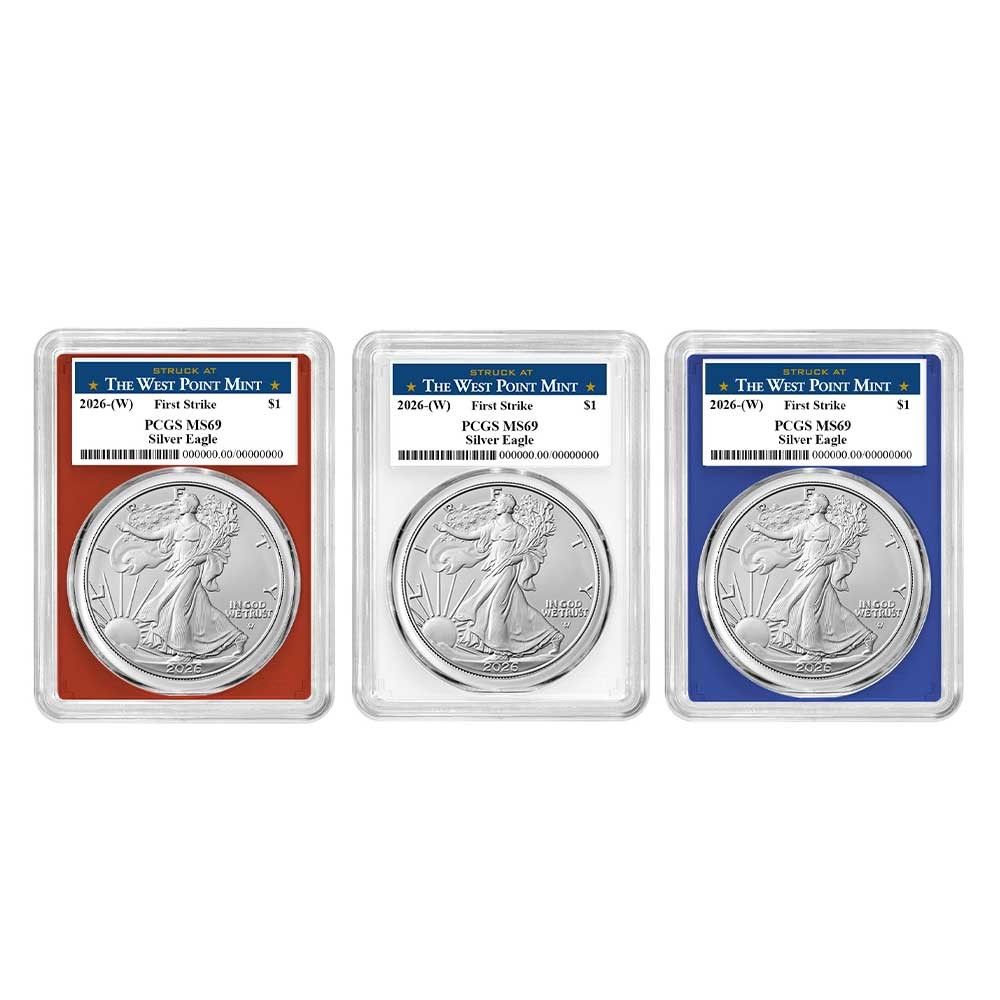 2026年 (W) 1ドル アメリカン シルバー イーグル 3枚セット PCGS MS69 FS ウェストポイント2026 (W) $1 American Silver Eagle 3pc Set PCGS MS69 FS West Point