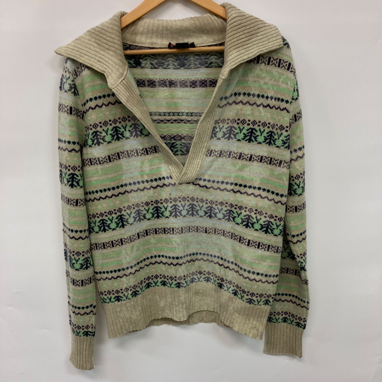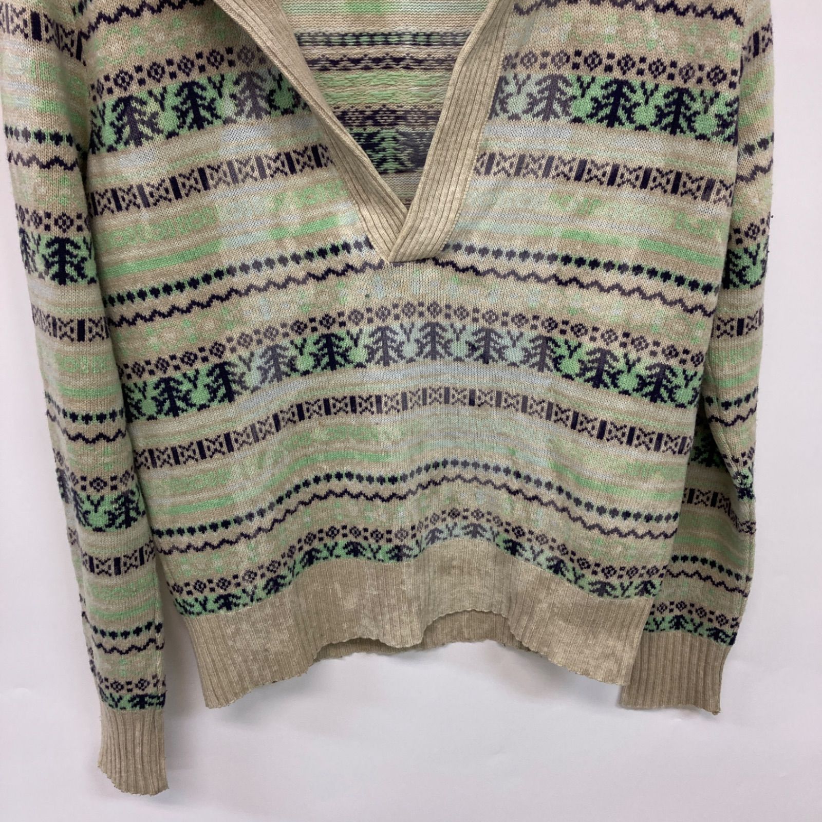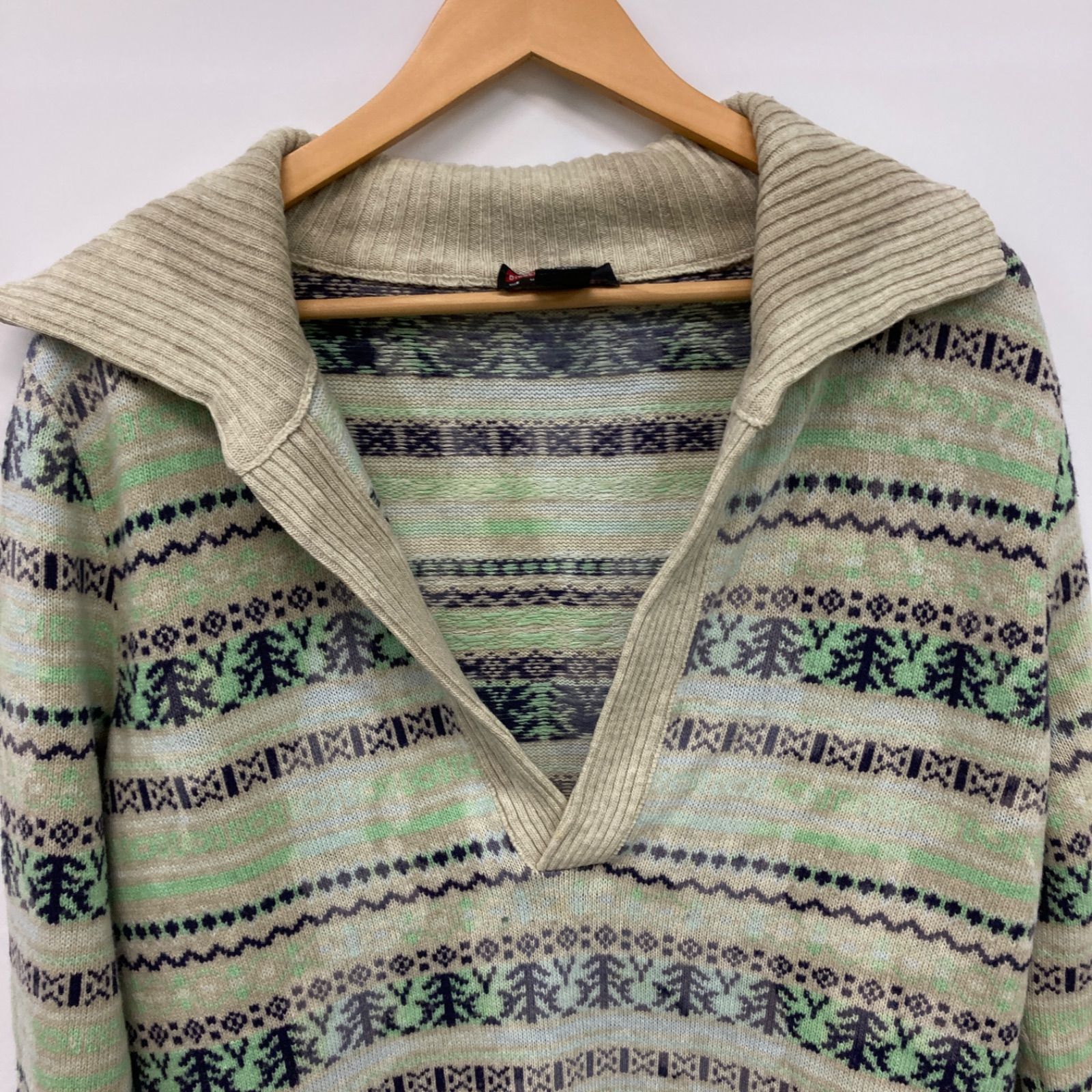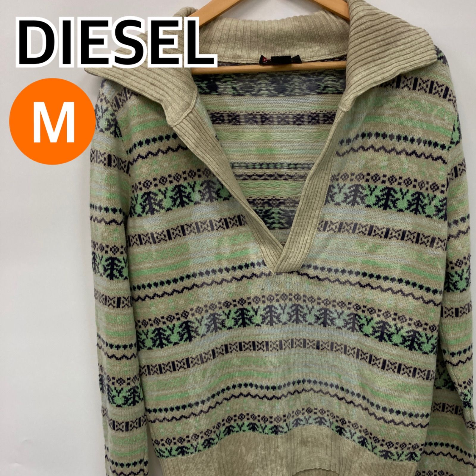 DIESEL ディーゼル トップス 長袖 セーター アイボリー グリーン メンズ レディース Mサイズ 【CT2413】