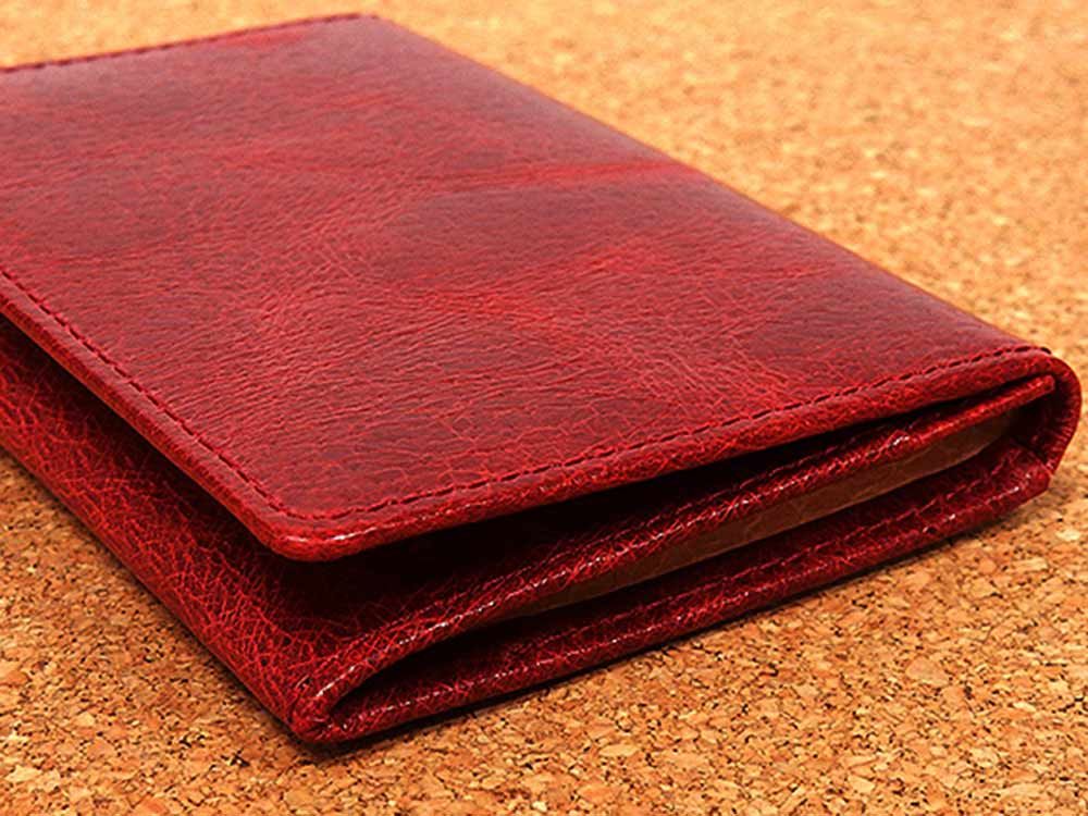 植物タンニンなめしの内地の豚革。エナメルでもパールでもない光沢感。
