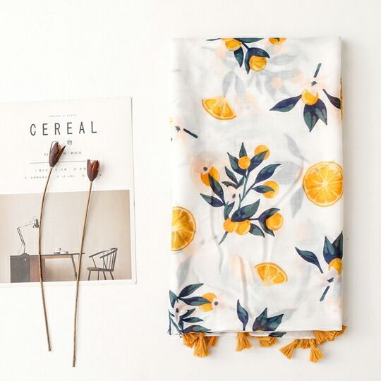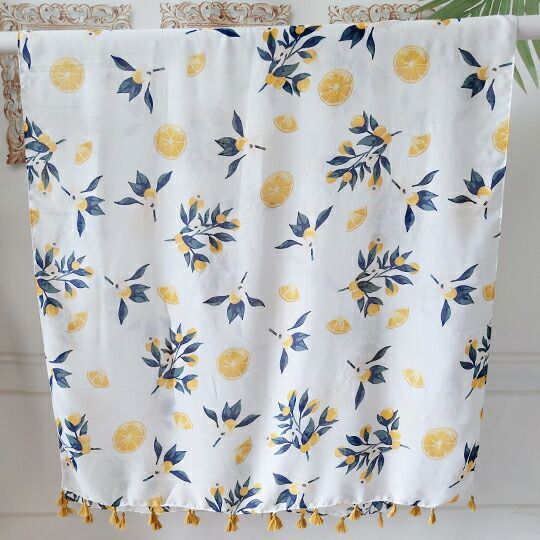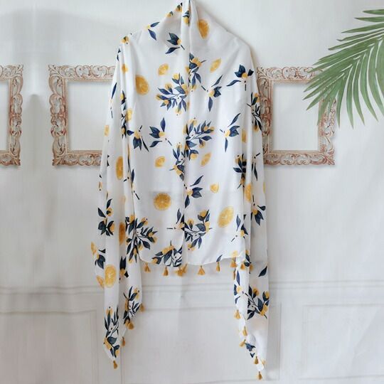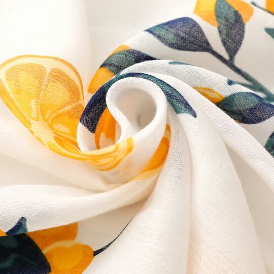 レモン柄 ふんわりと柔らかな生地で 肌触りの良い薄手の大判ストール 鮮やかなレモン柄が爽やかなアクセント 。コンパクトなデザインで首元をすっきりと 見せてくれる、おしゃれな一枚 爽やか新鮮 夏 シンプル フルーツ 爽やか サマー ワンピースma0345a