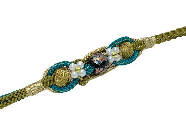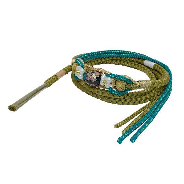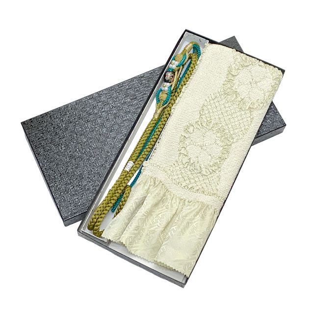 振袖用 正絹 帯揚げ 帯締めセット本絞りの帯揚げ 転写玉飾りの振袖用帯〆 セット「抹茶x生成り系」FOJset670
