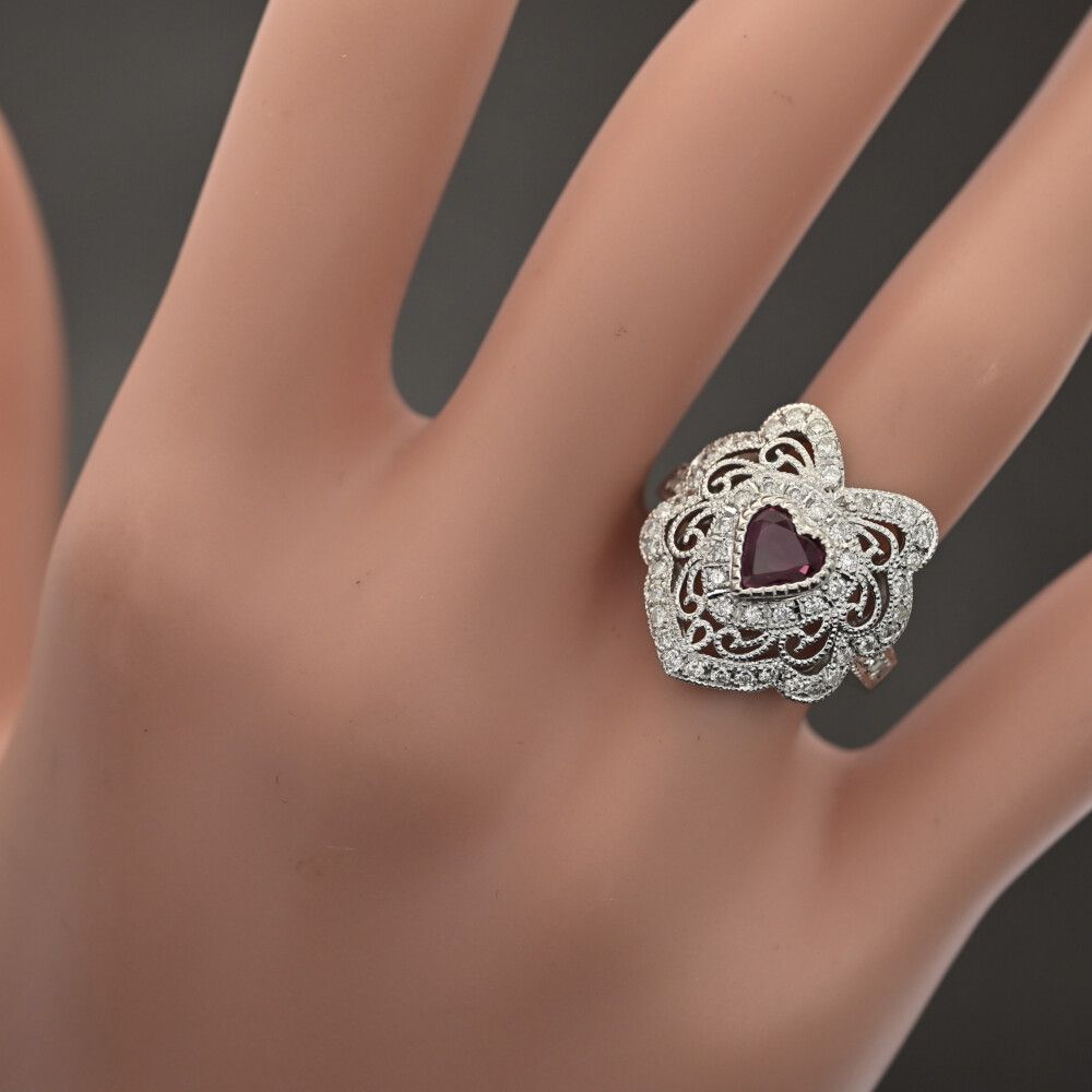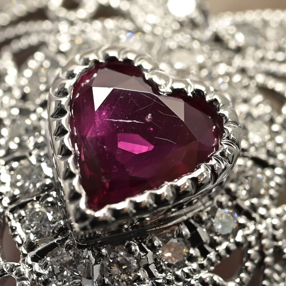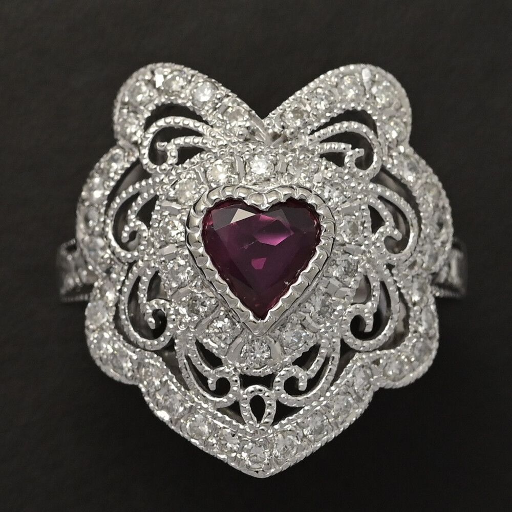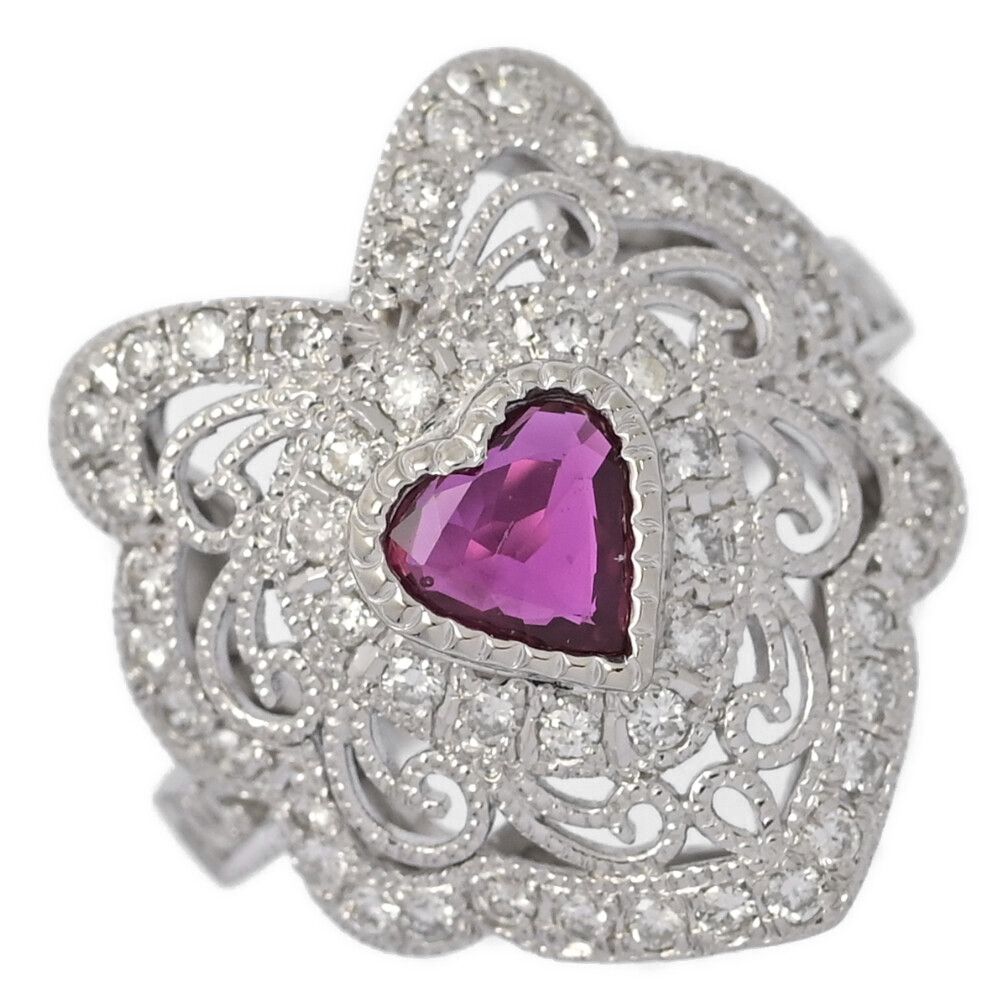 RU0.55ct/FD:0.43ct/スリランカ ハートモチーフ・ルビー・ダイヤモンド リング・指輪/Pt900-8.6g/10.5号/#50.5/プラチナ【♀】【S】【レディース】/h251219★■598514【中古】