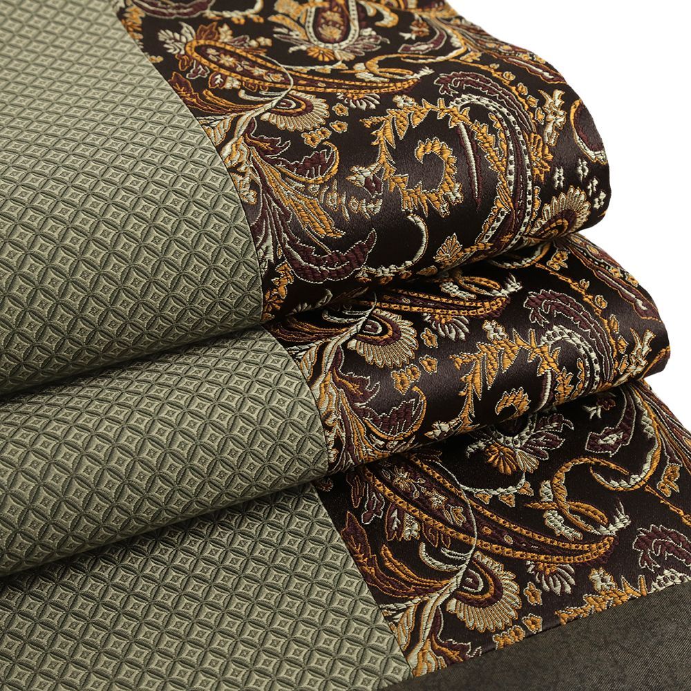 渋緑を基調とした七宝繋ぎに、ペイズリー柄。