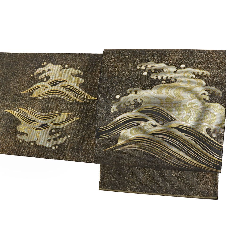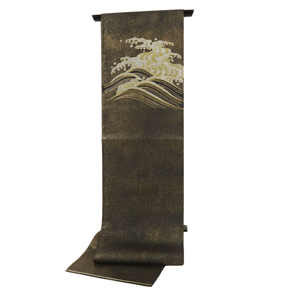 【 中古 】 袋帯 夏 正絹 絽 こげ茶 中古 波 螺鈿 リサイクル 帯 夏物 カジュアル 着物 仕立て上がり No.i6-2516