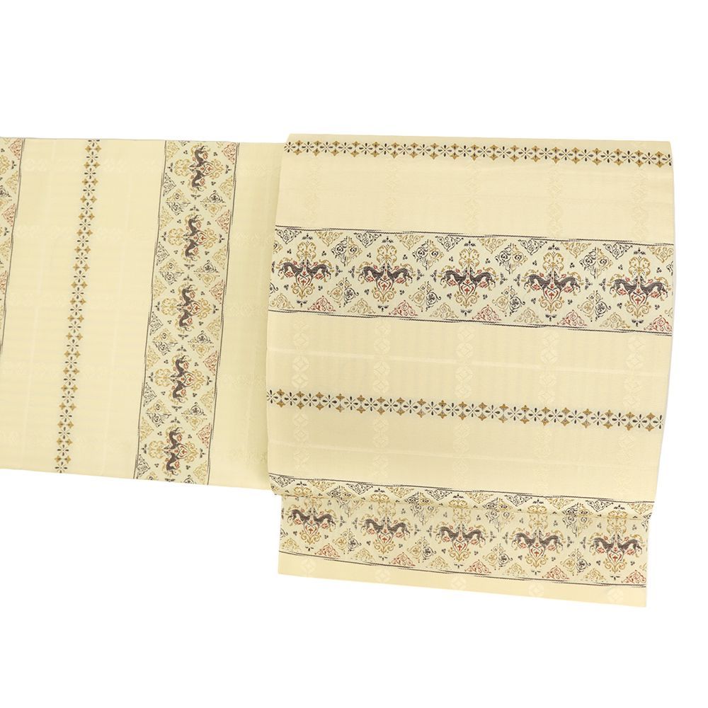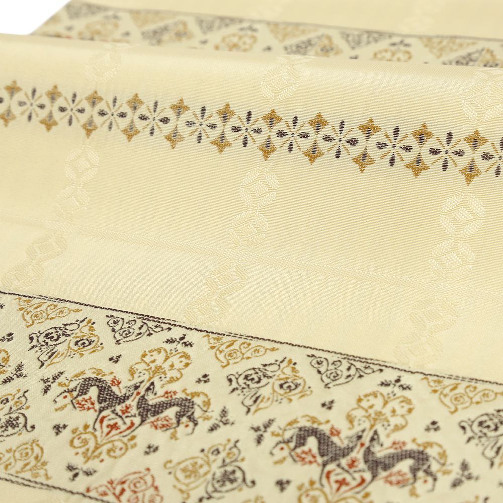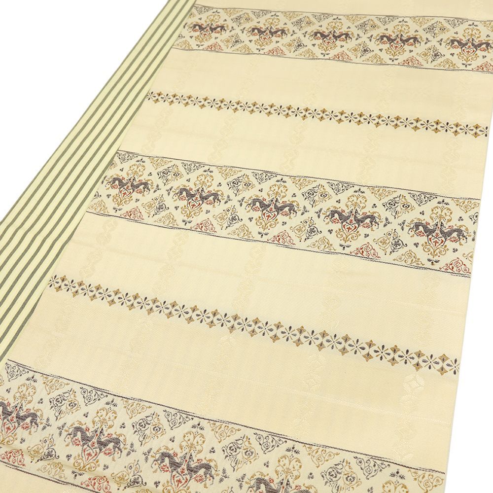 【 中古 】 袋帯 正絹 新古品 西陣織 全通 ベージュ エジプト 壁画 動物 リサイクル 帯 中古 西陣織 カジュアル 着物 仕立て上がり No.i6-2521