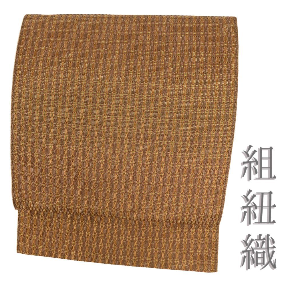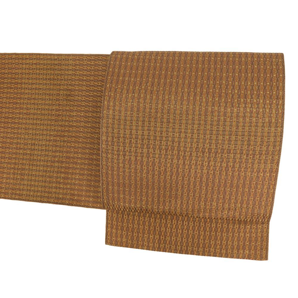【 中古 】 名古屋帯 正絹 新古品 茶 組紐織 格子 帯 カジュアル 着物 仕立て上がり 八寸名古屋帯 No.i6-2531