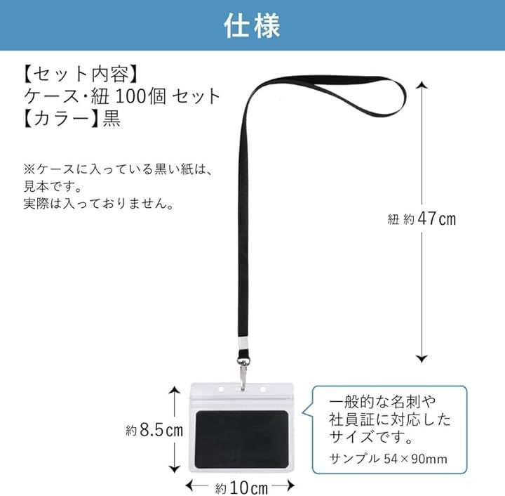 (紐) 約47cm ポリエステル (ケース) 約85x10 mm 「セット内容」紐、ケース 100個 「色」黒