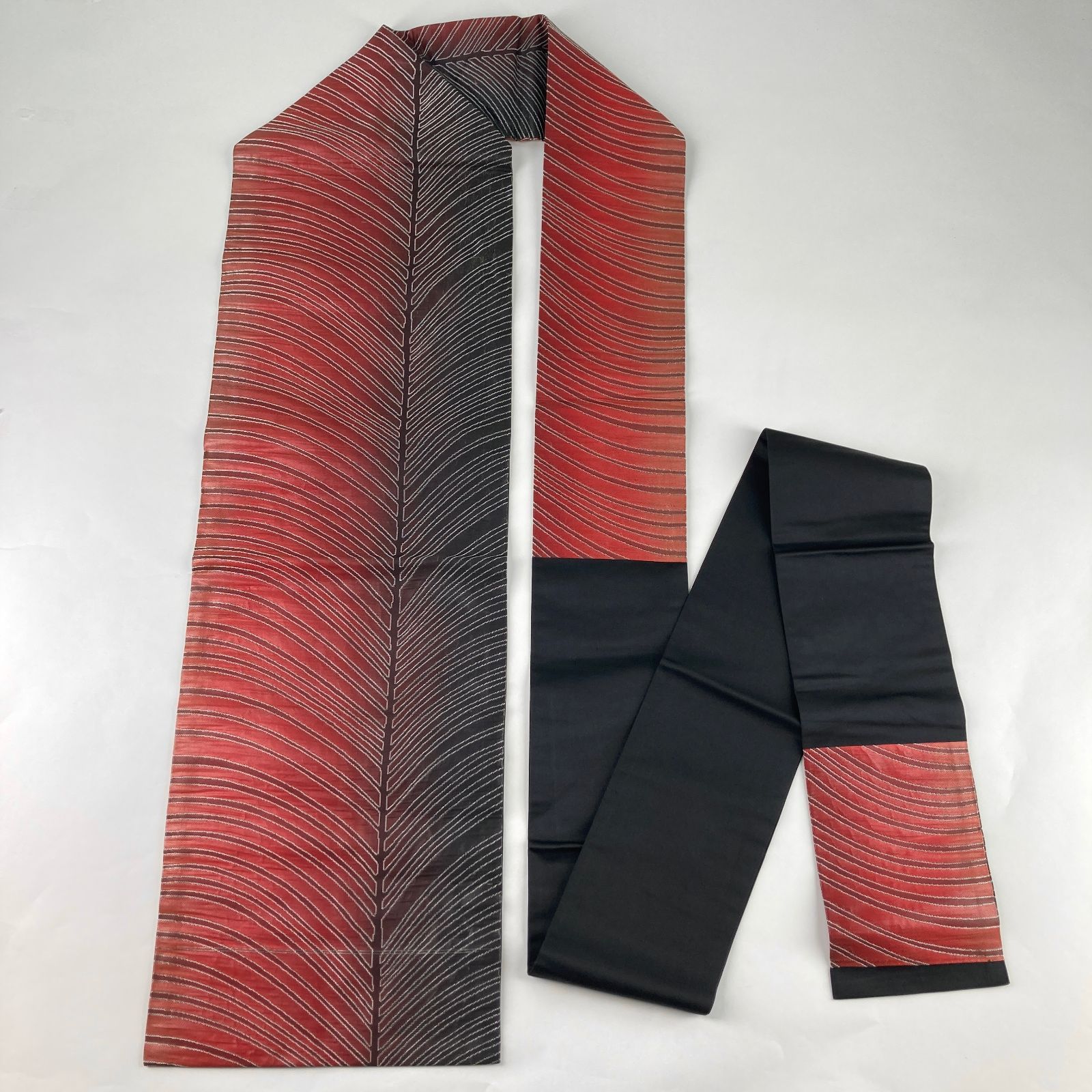 未洗い/リユース/名古屋帯/黒 赤/カジュアル/引き箔/若松/絹/名古屋仕立て/たんす屋/たんす屋オンラインストア