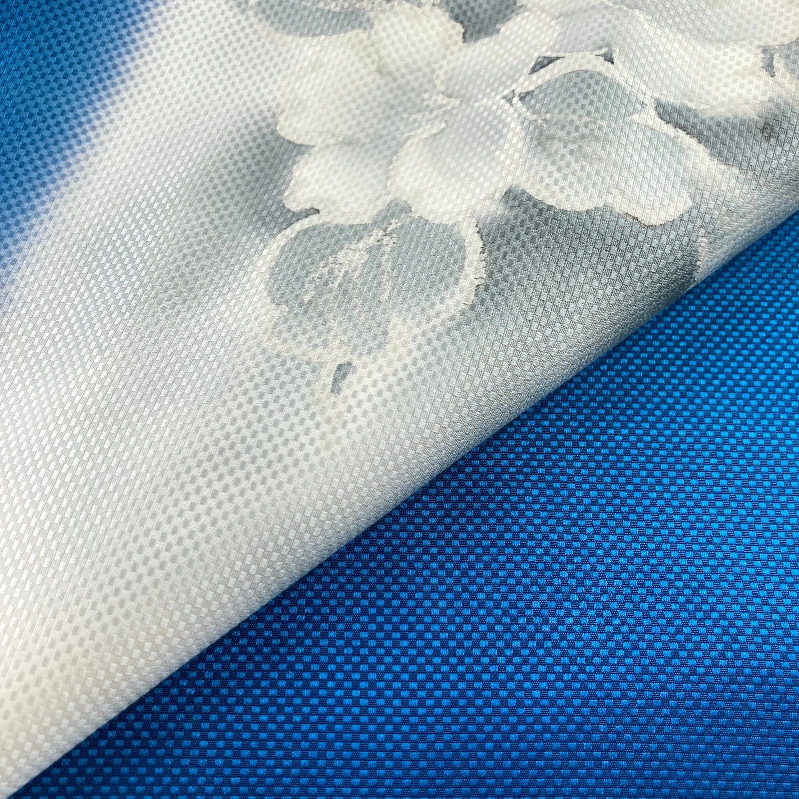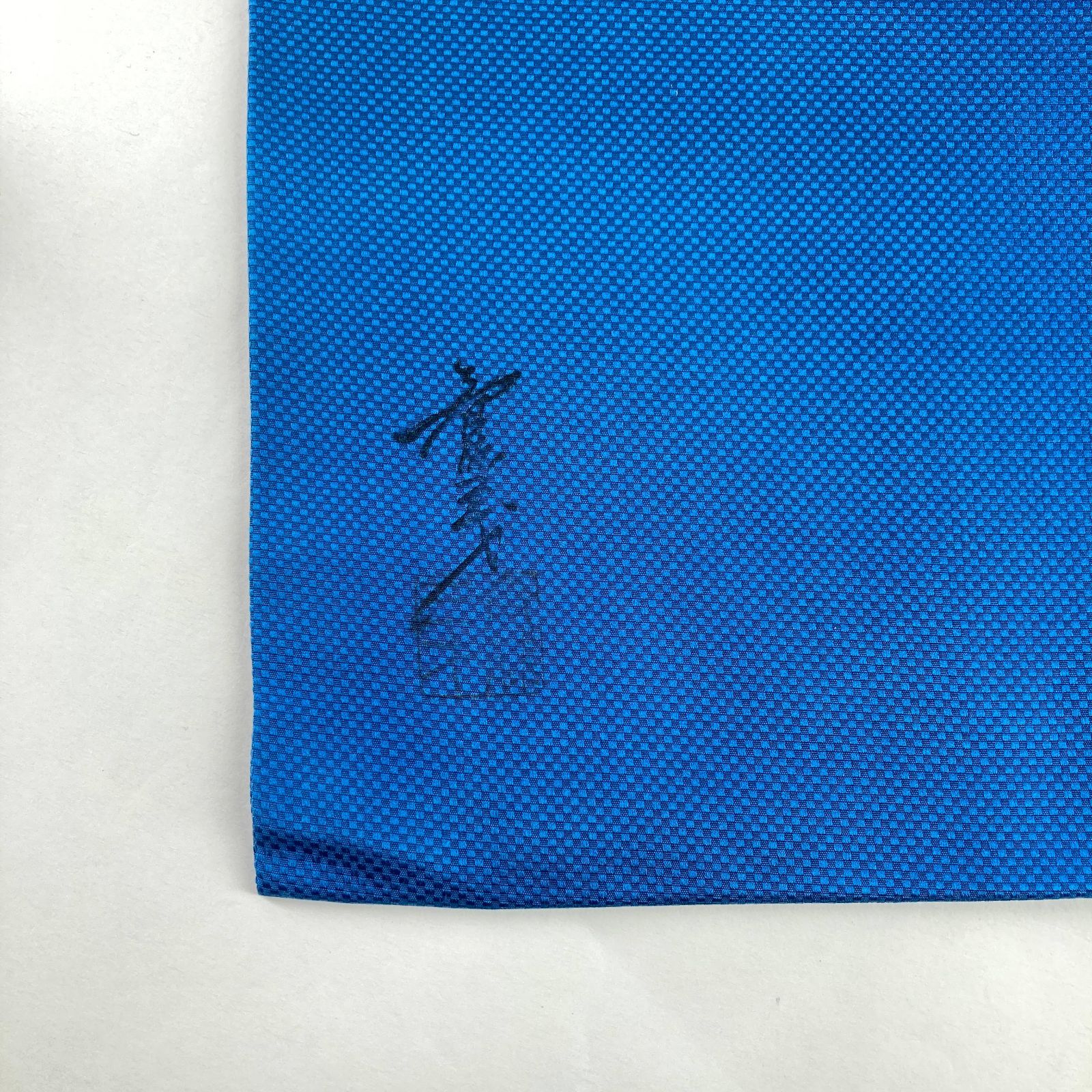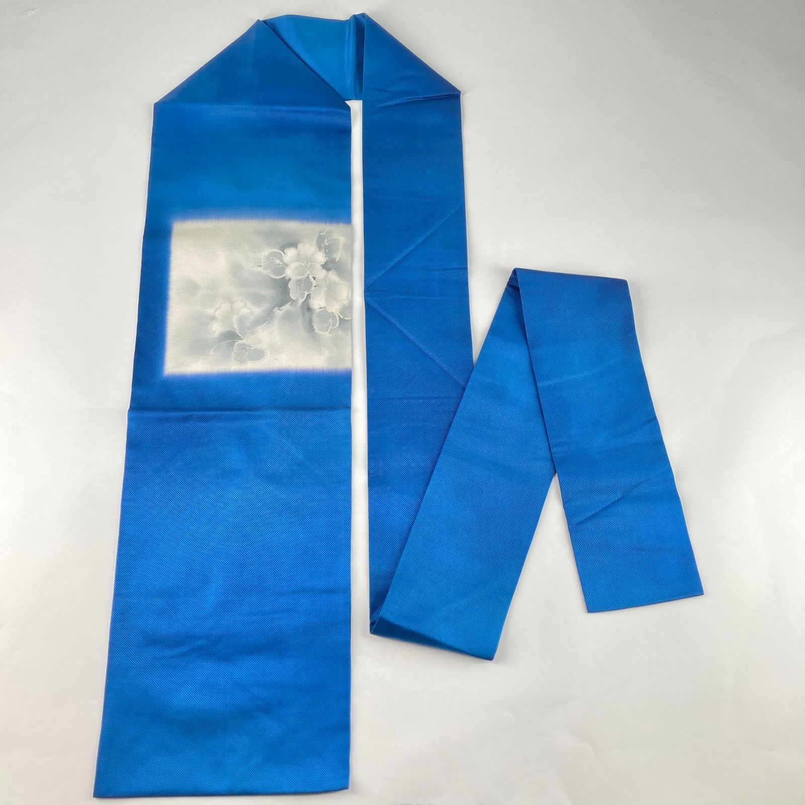 未洗い/リユース/名古屋帯/青/カジュアル/染め/墨黒の花/絹/名古屋仕立て/落款 斉藤三才/たんす屋/たんす屋オンラインストア