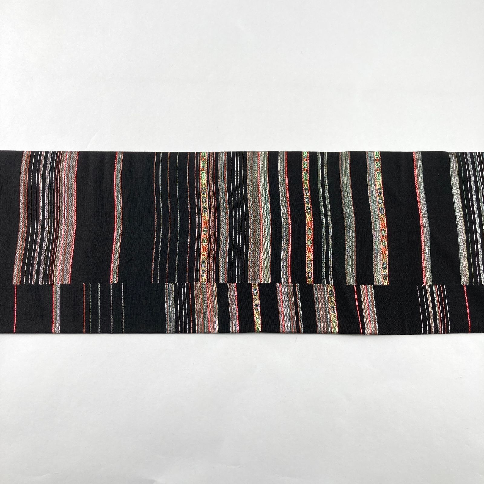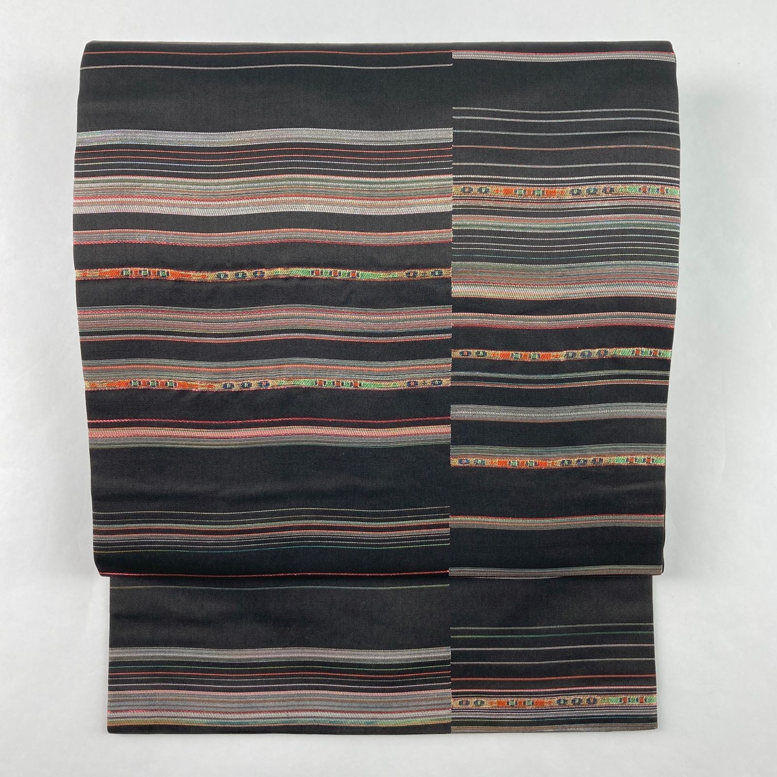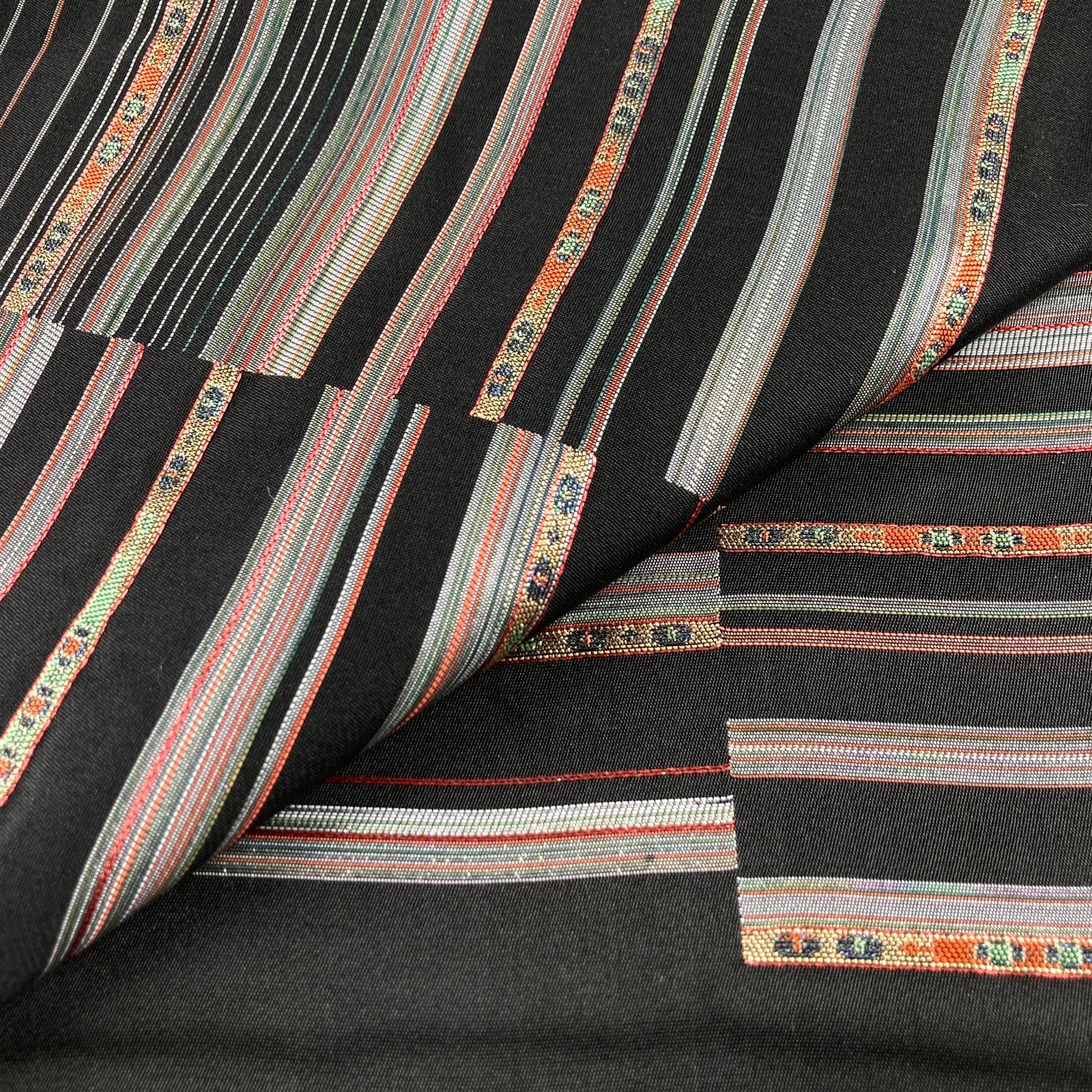未洗い/リユース/名古屋帯/墨黒/カジュアル/カラー箔/変わり横段/絹/名古屋仕立て/たんす屋/たんす屋オンラインストア