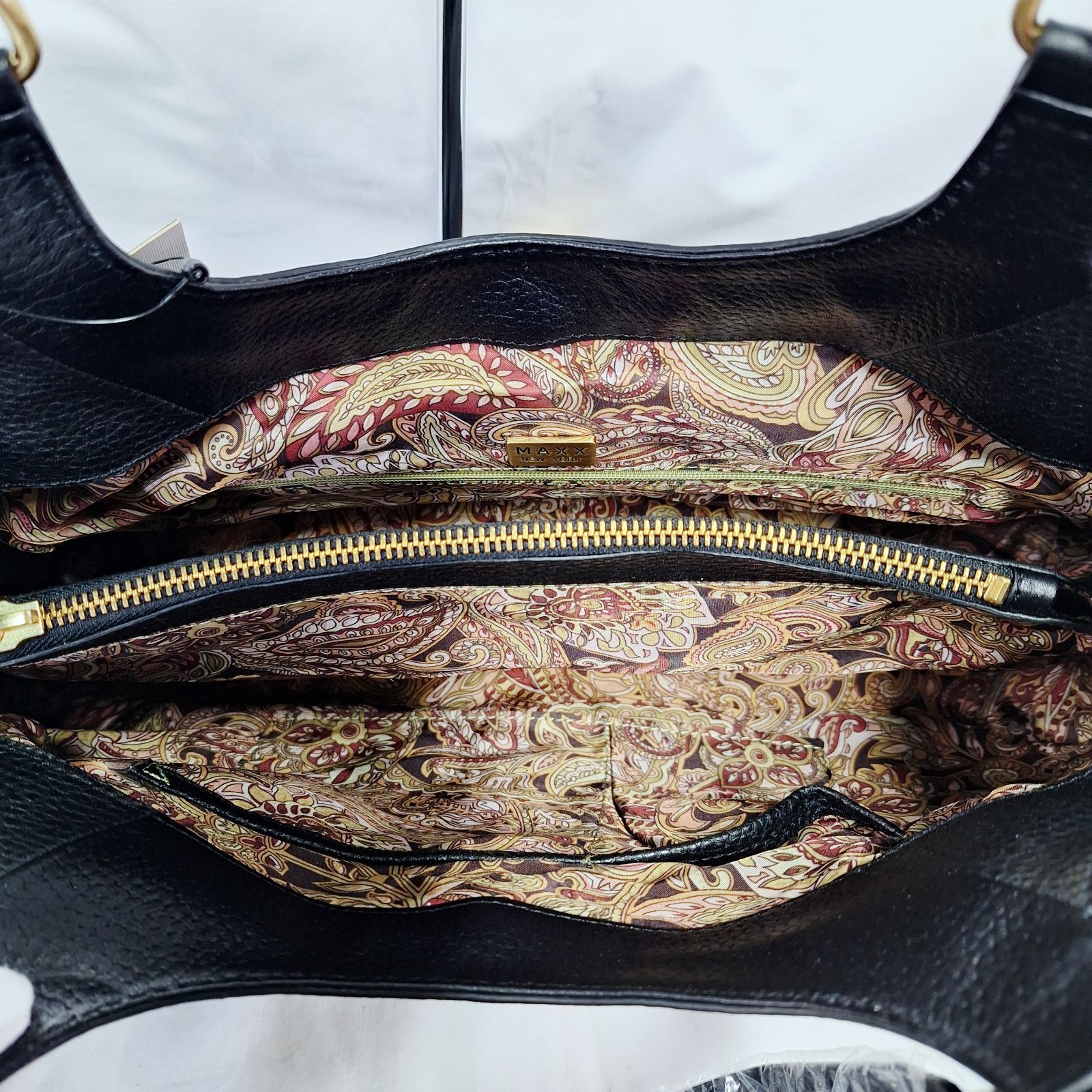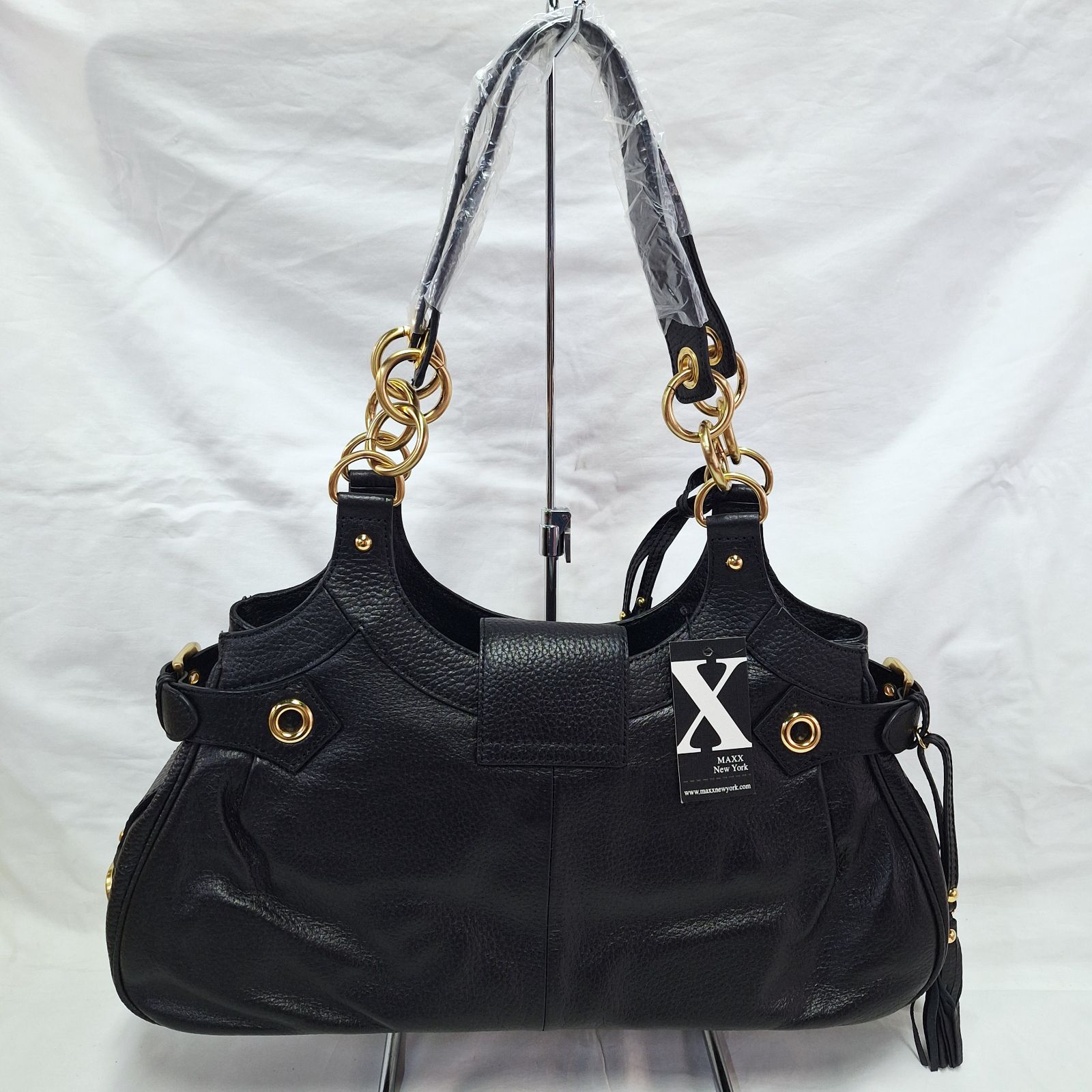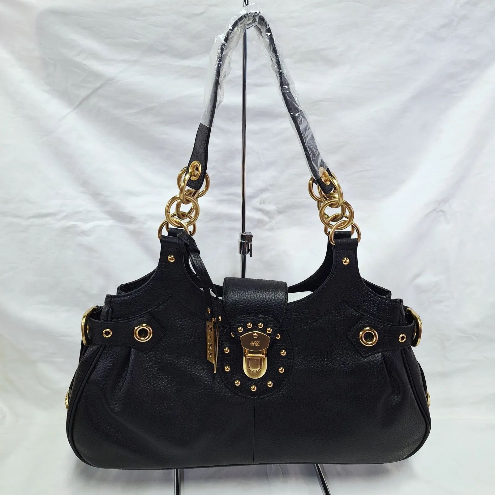 レザー調のハンドバッグです。中生地はペイズリー柄で見えない部分も拘って作られております。ゴールドのスタッズやプレートなので見た目強めなデザインですが丸みのあるフォルムが上品でとても高見えします。当店女性スタッフも欲しい!!と声を上げるほどとにかく現物がかわいいです。しっかりマチがありますし長財布も入るくらいの幅が十分にあります。持ち手27cmで窮屈感なく肩掛け可能。金具がジャラジャラ鳴りますが好きな方にはたまらない音です♡Y2Kファッションを好む方にもオススメです♪