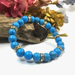 こちらは、8mm玉のターコイズとアラゴナイトを使ったパワーストーンブレスレットです。シンプルなデザインでどんなコーディネートにも合わせやすいデザインに仕上げています。サイズは内周約15cmです。気になる方は是非この機会にどうぞ。