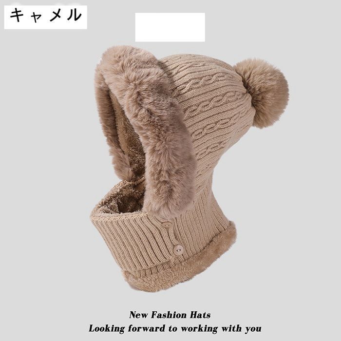 バラクラバ ニット ネックウォーマー レディース メンズ ニット帽子 男女兼用 裏ボア ファー マフラー 帽子 ぼうし フード付きネックウォーマー 防寒対策 あったか グッズ コーデ 耳まで暖か 柔らかくて暖かい ギフト プレゼント 贈り物