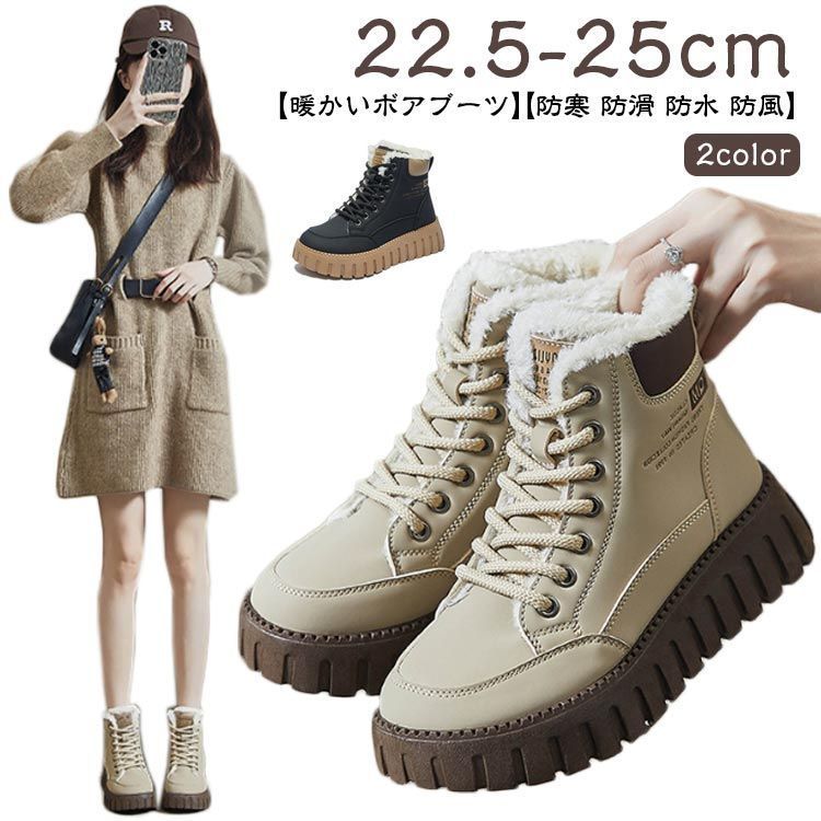 【暖かいボアブーツ】【22.5-25cm】【2color】【防寒 防滑 防水 防風】