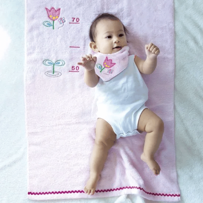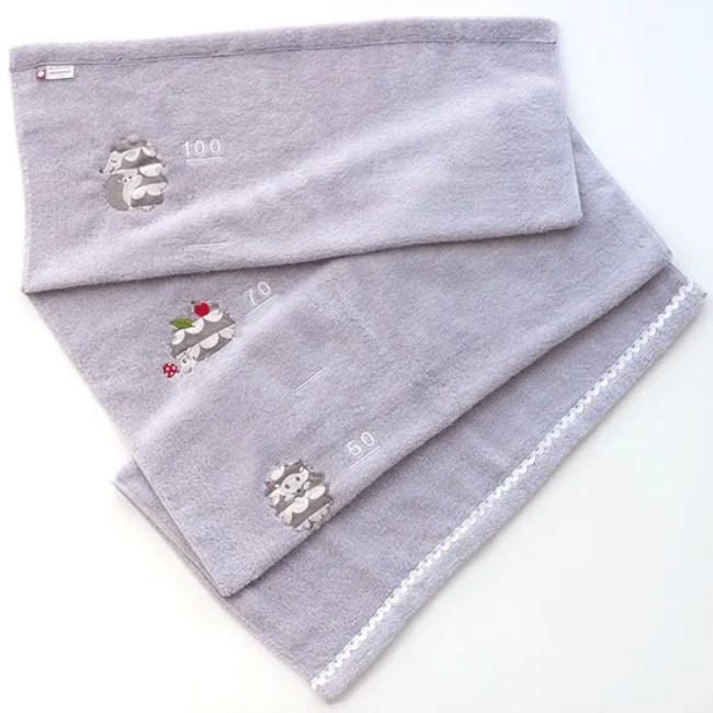 身長が測れるタオルとしては、とてもめずらしい刺繍タイプ。