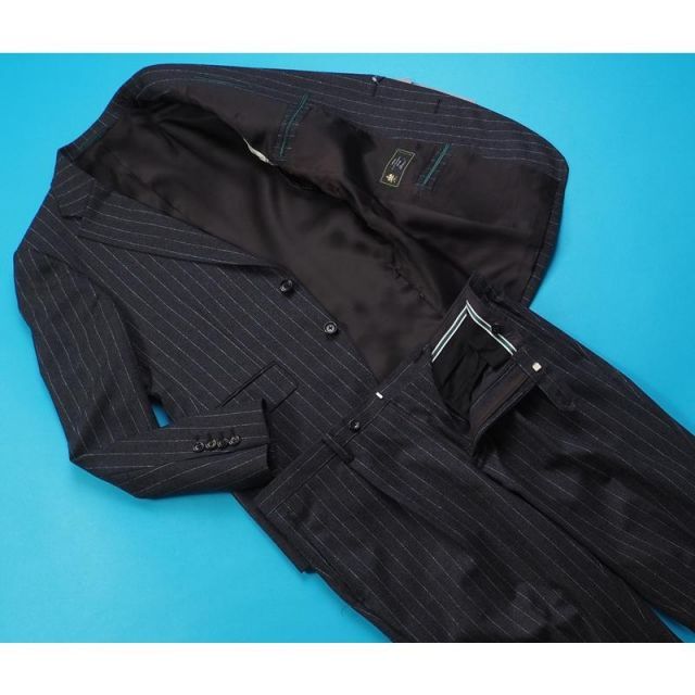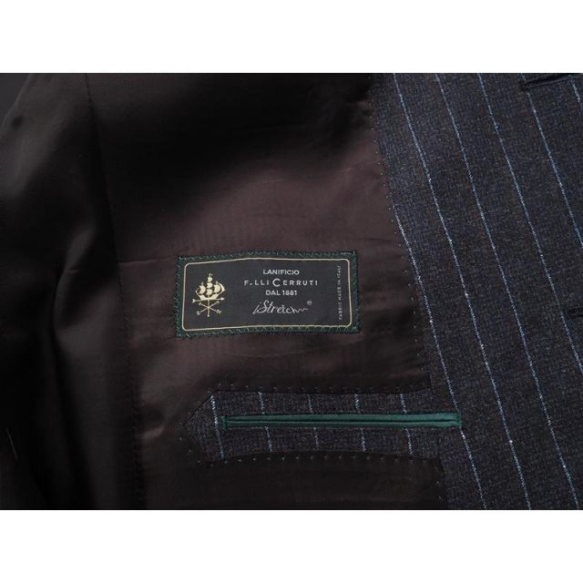 商品名:新品10.8万円 大手百貨店扱い 秋冬『CERRUTI チェルッティ 伊製生地』ウール ライトフランネル ストライプ スーツAB5紺(E) 1010291