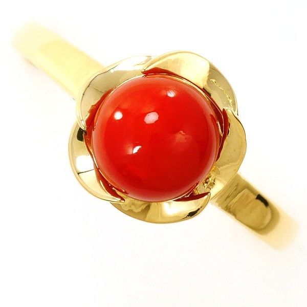K18YG リング ring 指輪 14号 サンゴ 総重量約2.1g