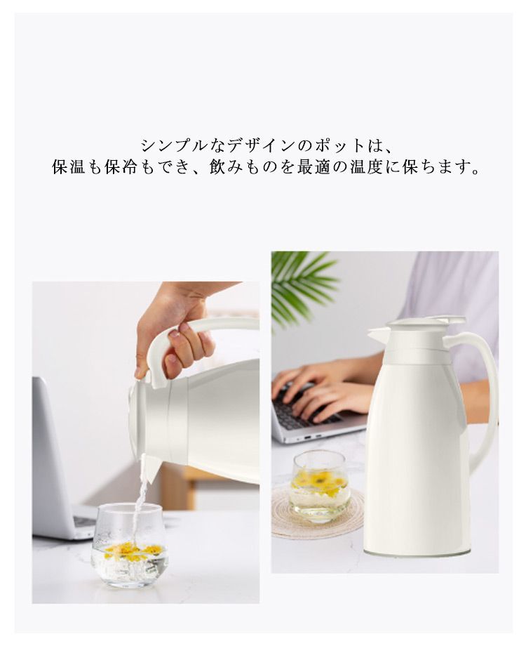 シンプルなデザインのポットは、保温も保冷もでき、飲みものを最適の温度に保ちます。