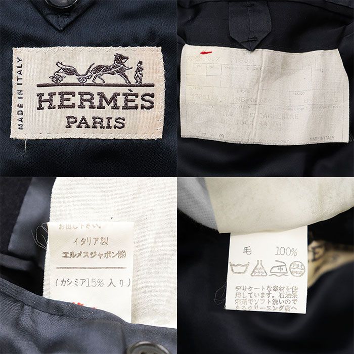 【シリーズ】HERMES エルメス ヴィンテージ チェスターコート ウール × カシミヤ メルトン ダブルブレスト バックベルト アウター メンズ サイズ不明 紺