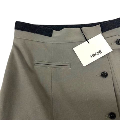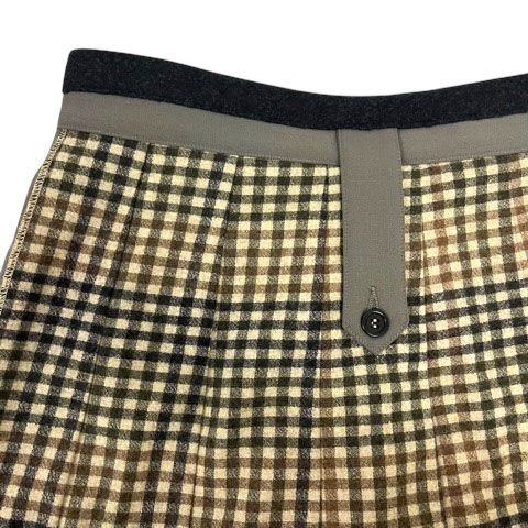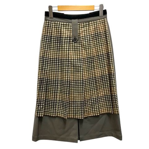 【商品名】アッシュ HACHE スカート フレア プリーツ ウール混 チェック ロング丈 40 緑 カーキ ベージュ