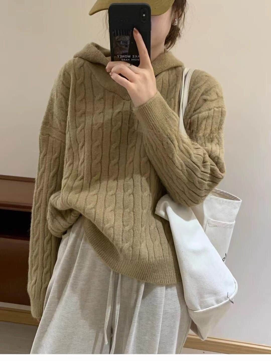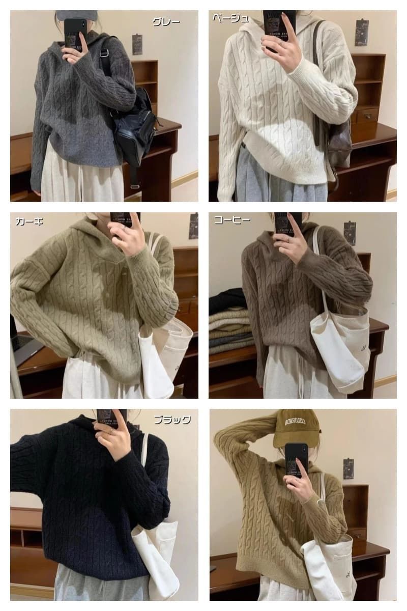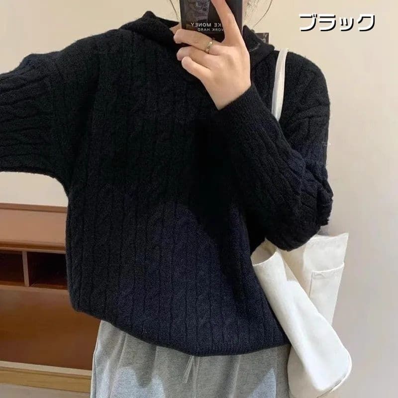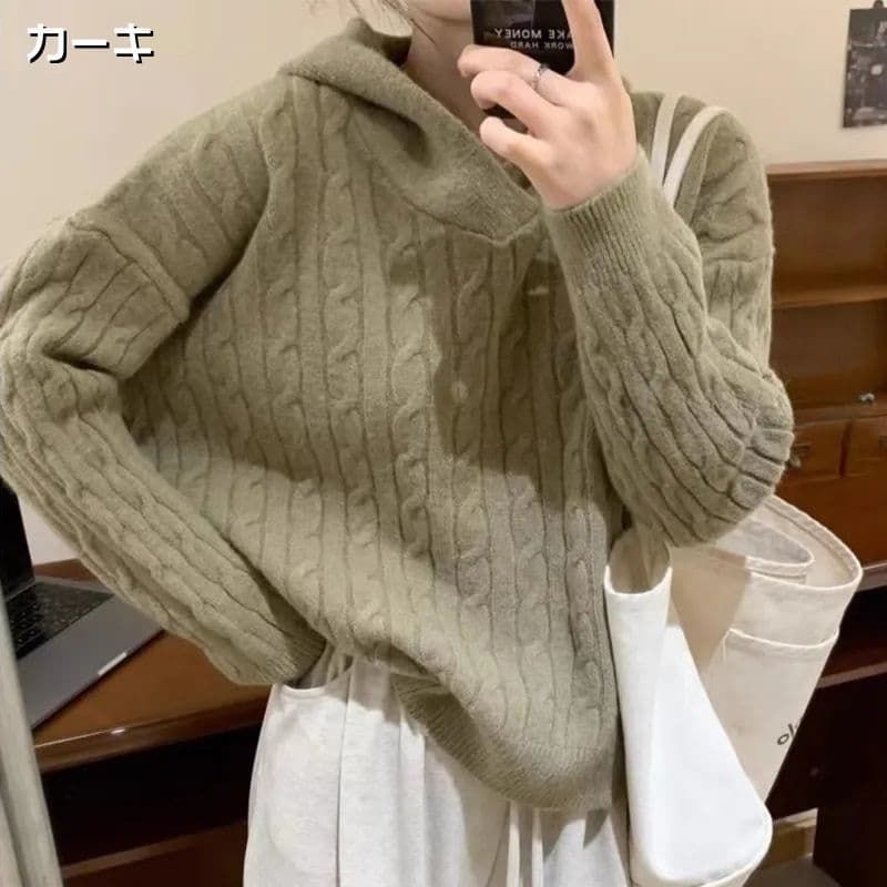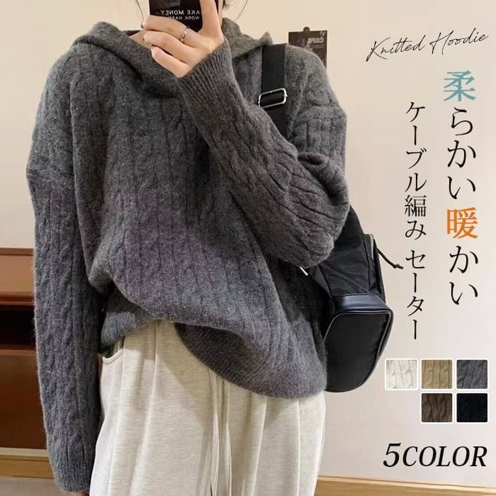 ケーブル編み セーター パーカー フード付き シャギー 厚手 防寒 暖かい 冬 柔らかい ストレッチ レディース ニットパーカー 長袖 無地 プルオーバー 可愛い オフィス ビジネス 通勤 シンプル おしゃれ カジュアル 着痩せ 新作