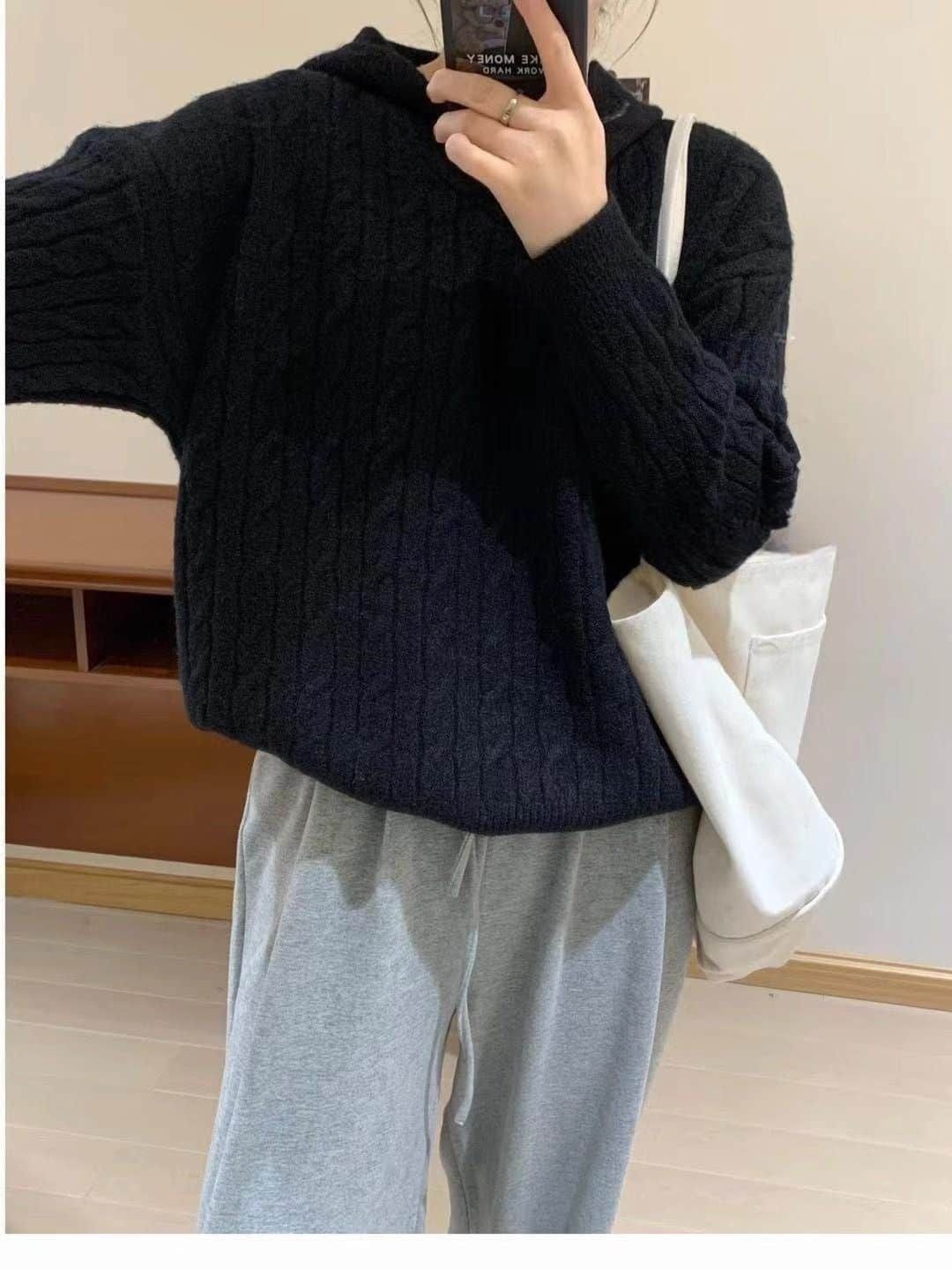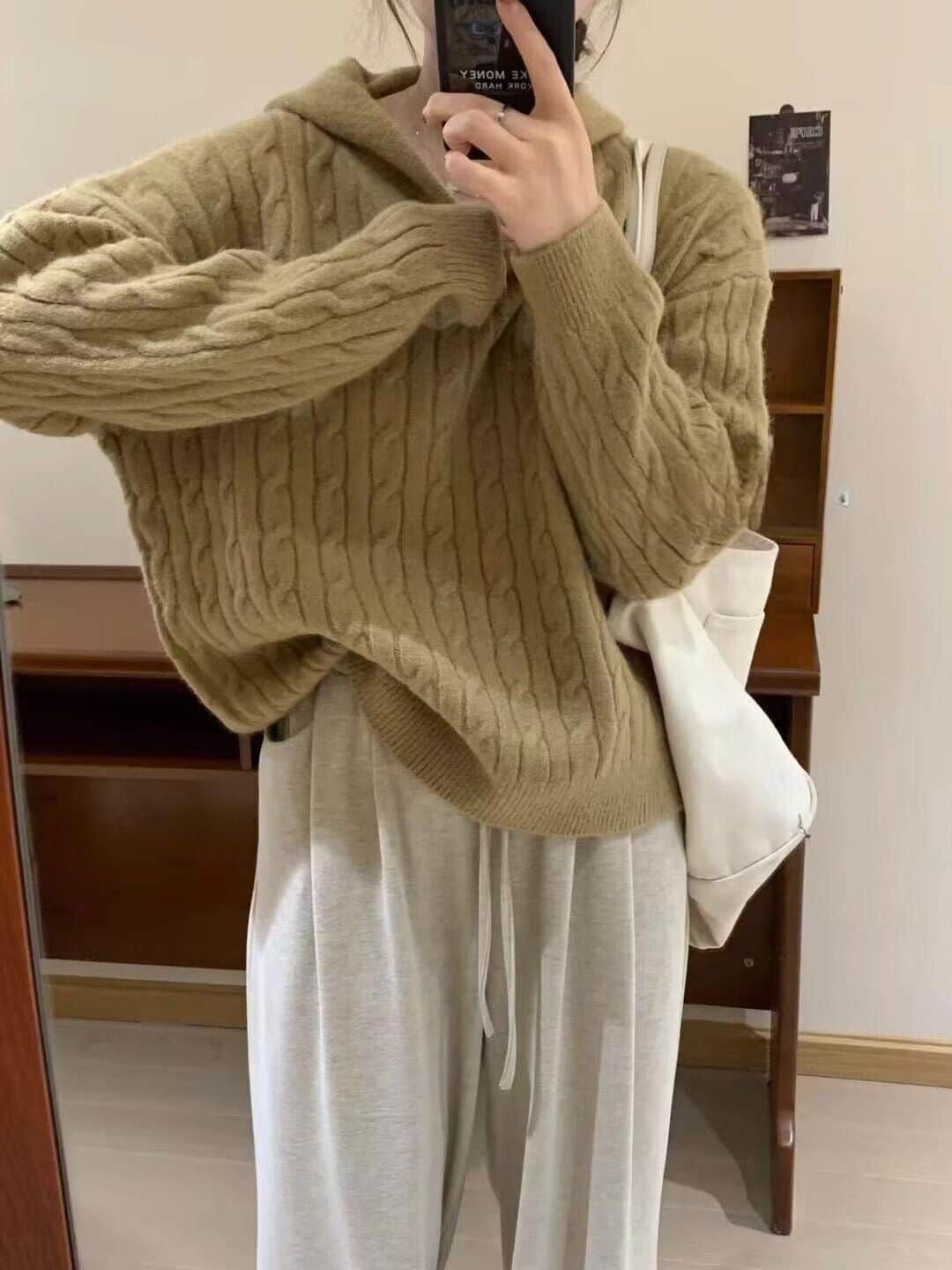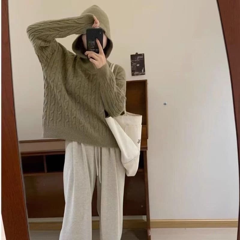 ケーブル編み セーター パーカー フード付き シャギー 厚手 防寒 暖かい 冬 柔らかい ストレッチ レディース ニットパーカー 長袖 無地 プルオーバー 可愛い オフィス ビジネス 通勤 シンプル おしゃれ カジュアル 着痩せ 新作