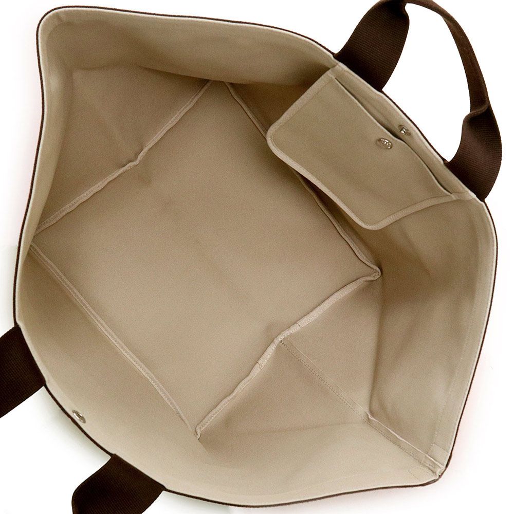 【商品紹介】耐久性の高いコーテッドキャンバスが使用されており、トップトリミングとハンドルは丈夫なコットン製です。シンプルなデザインと上品な色合いが特徴です。