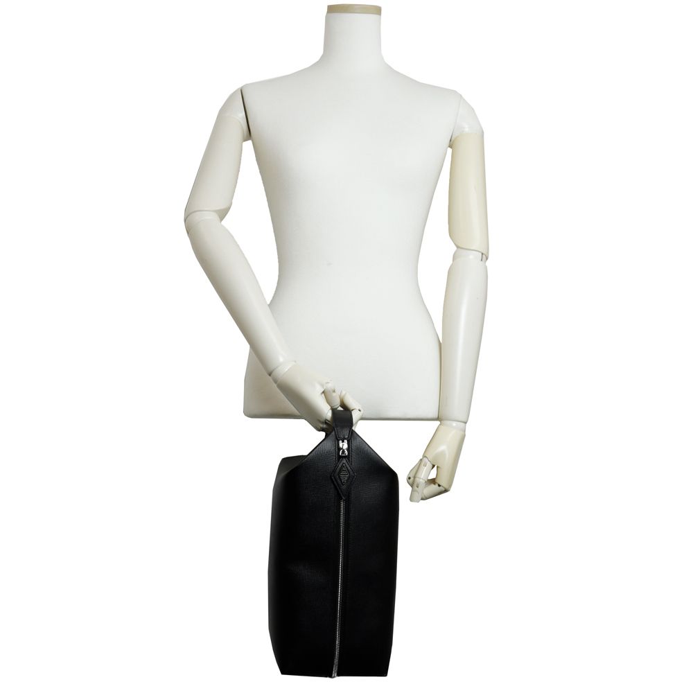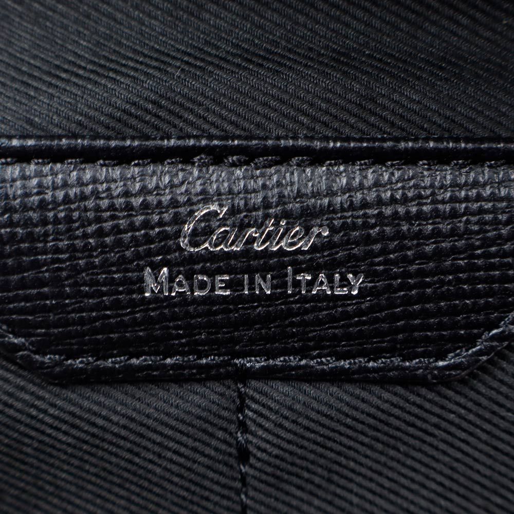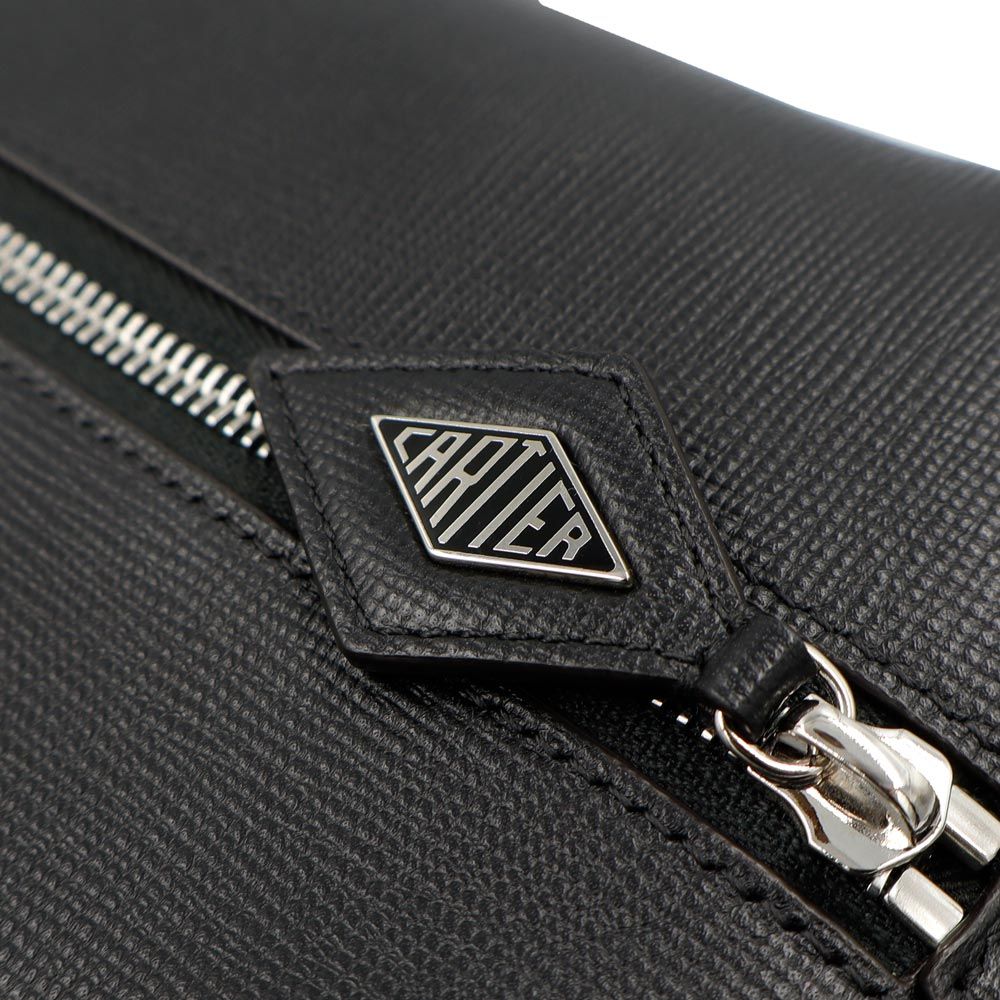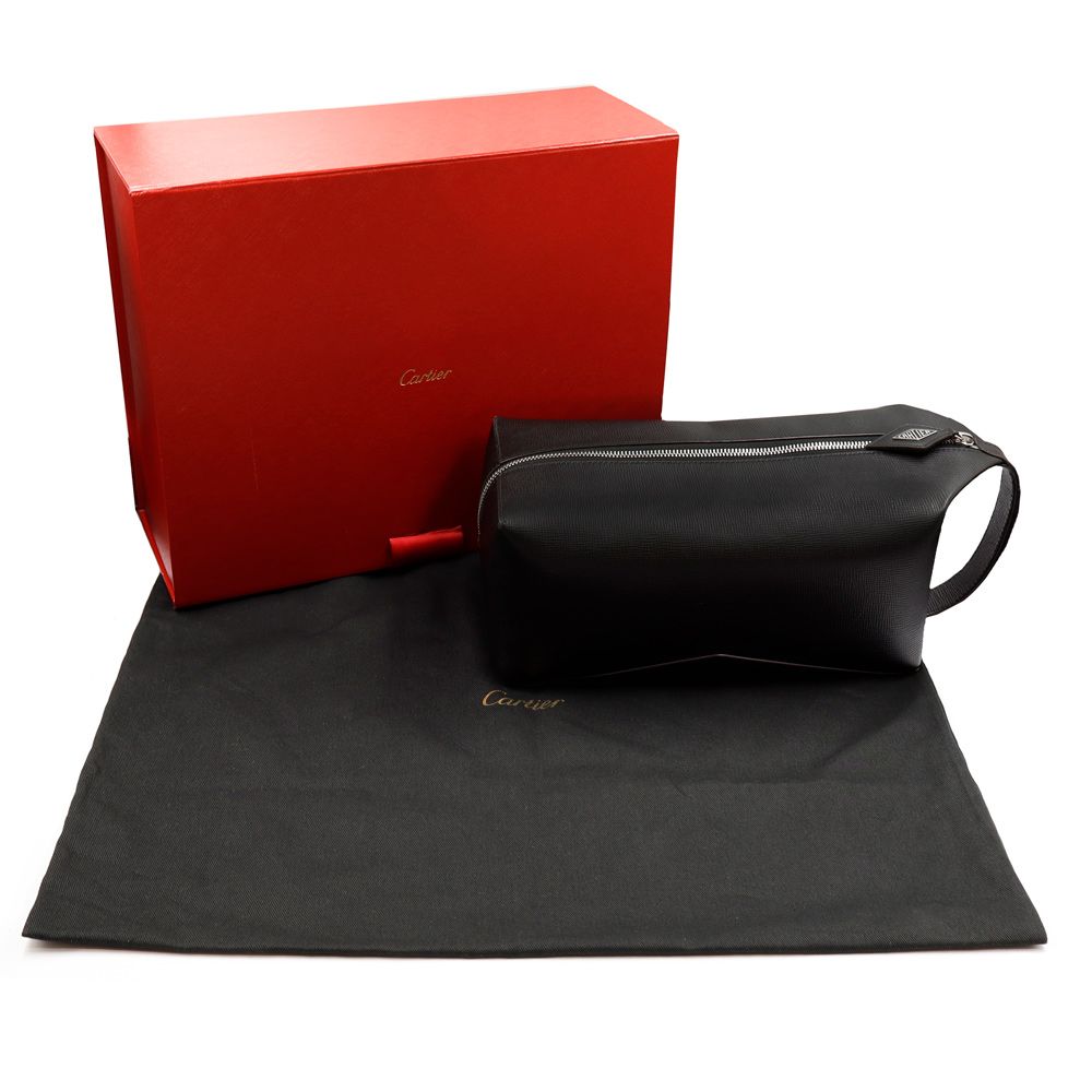 【商品紹介】カルティエの上質なカーフスキンを使用した、ロザンジュデザインが特徴的なスモールトイレタリーバッグです。ブラックレザーにシルバー金具を組み合わせた、上品で使いやすいハンドバッグです。