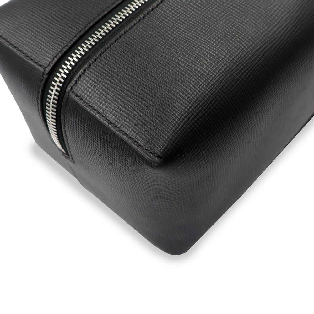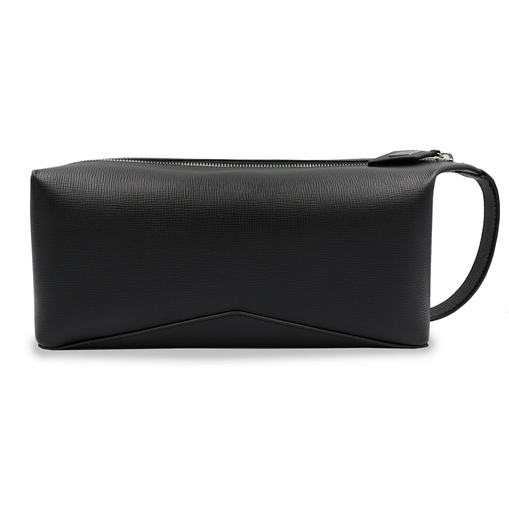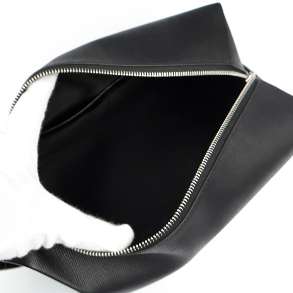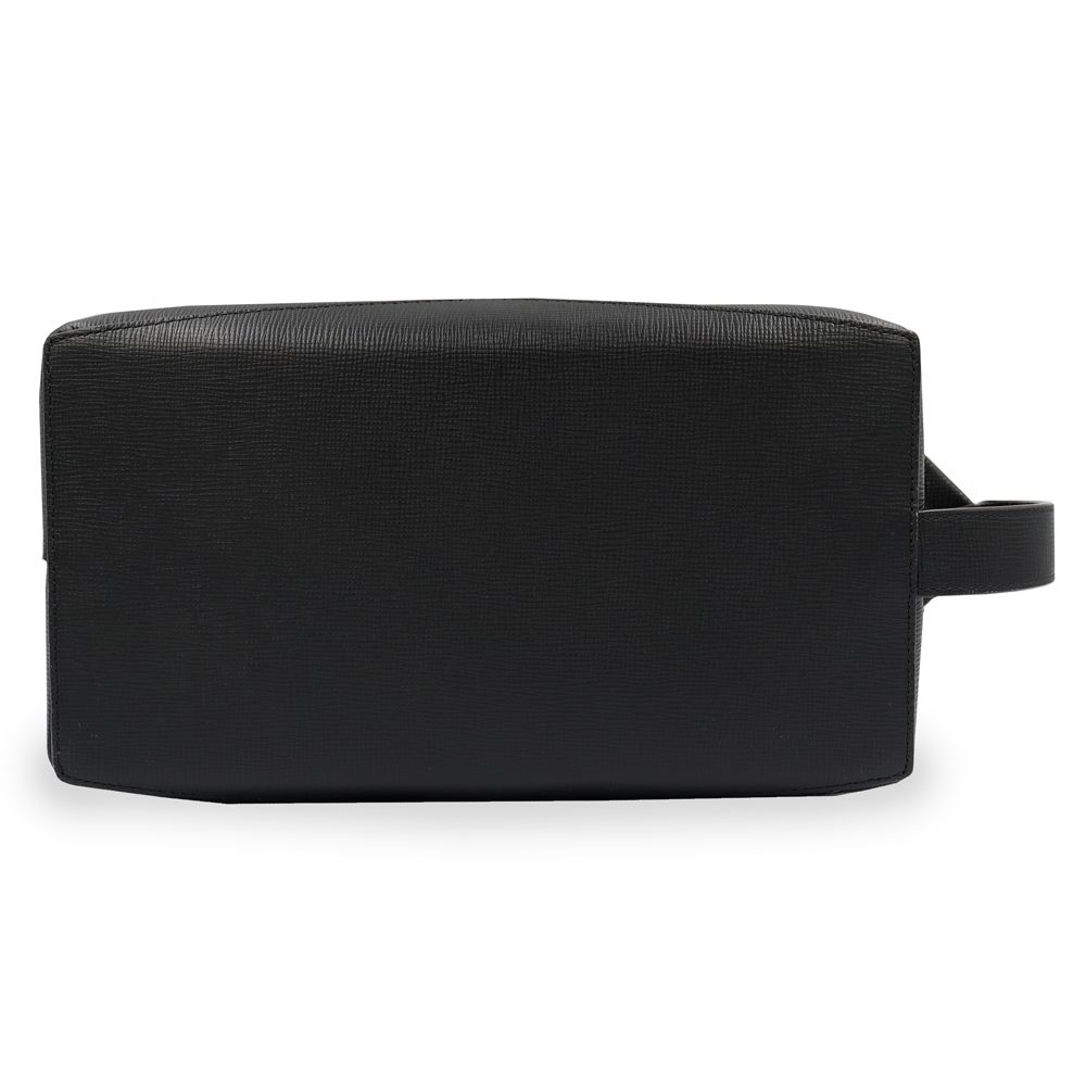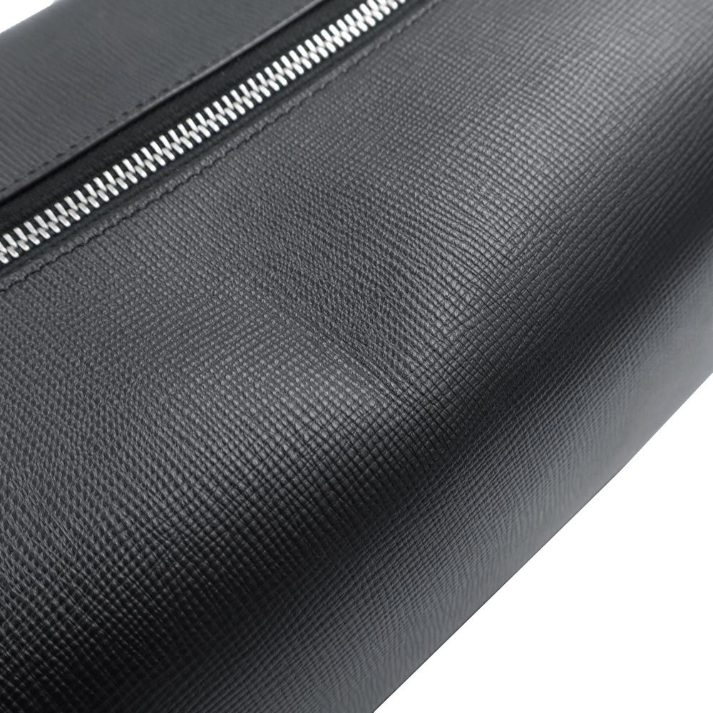 【商品紹介】カルティエの上質なカーフスキンを使用した、ロザンジュデザインが特徴的なスモールトイレタリーバッグです。ブラックレザーにシルバー金具を組み合わせた、上品で使いやすいハンドバッグです。