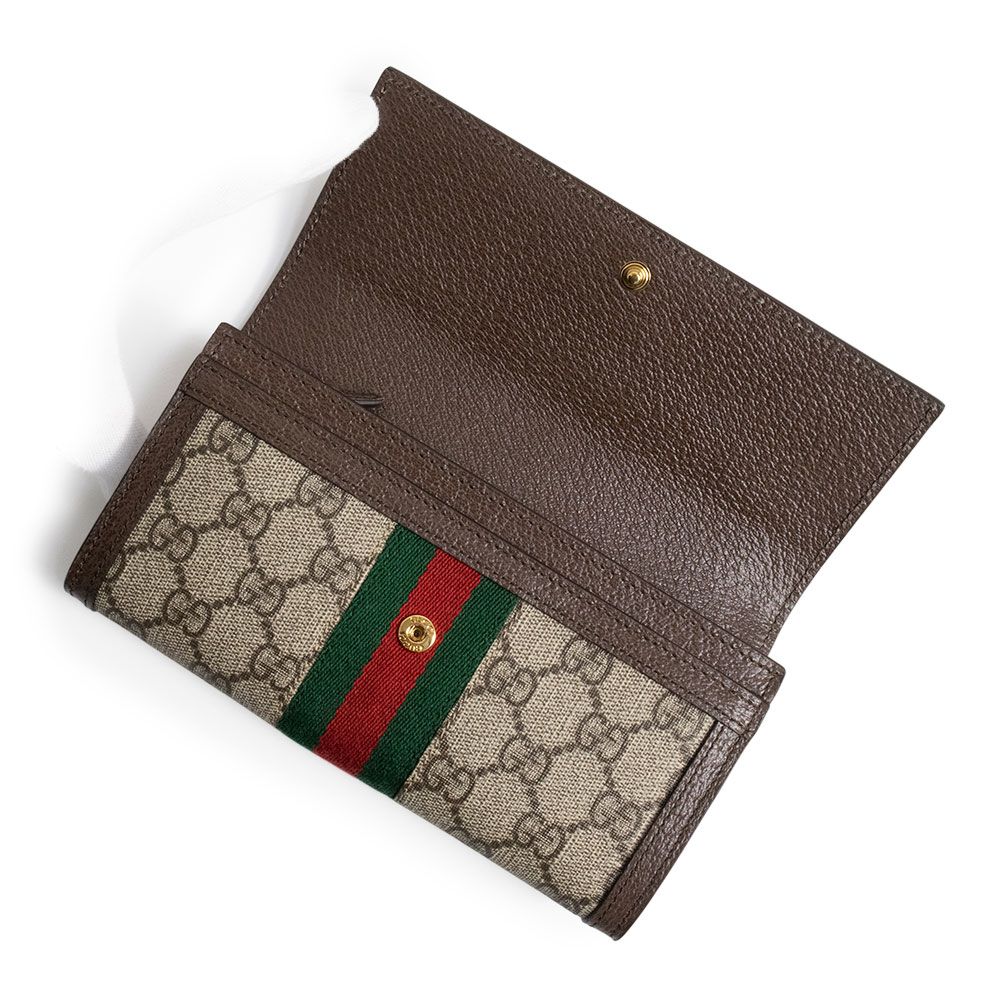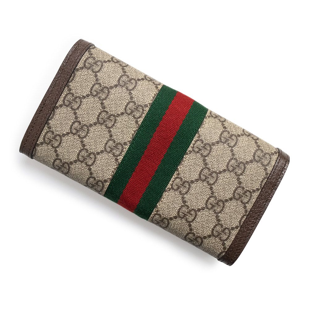 【商品紹介】グッチの「オフィディア」コンチネンタルウォレット。シェリーラインとダブルGのモチーフが特徴的で、ウェブとともにデザインされたGGパターンのウォレットは、グッチのルーツを象徴するデザインです。