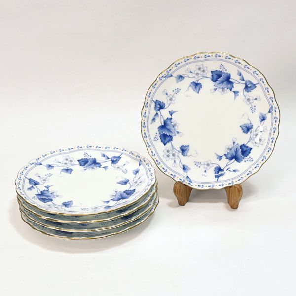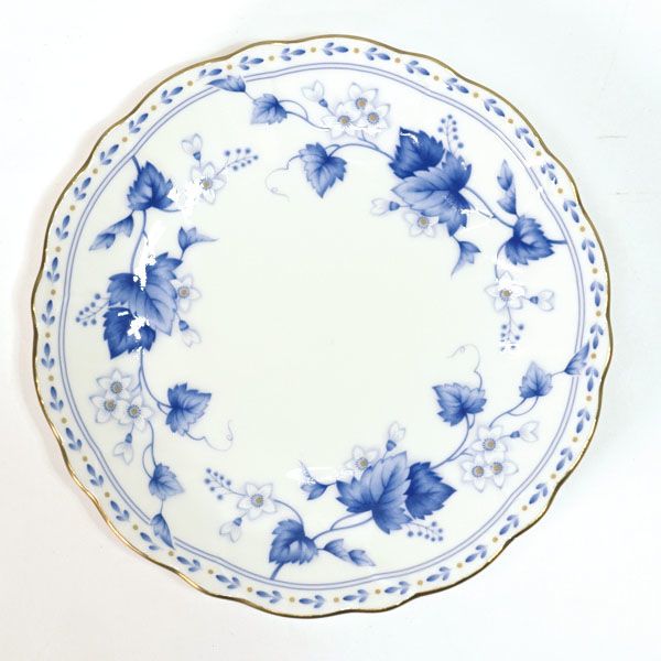 ・アピールコメント:人気のナルミ、白磁にブルーリーフと小花を描いた愛らしいプレートセットです♪