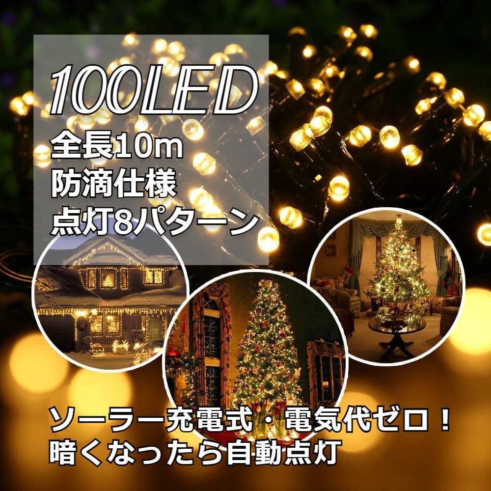 他社にない1800mAhバッテリーを採用。LED100球、長さ10M(電源コード2M、合計12M)、点灯モード8種類、IP65防水、ソーラー充電式で長い時間お使い頂けます。